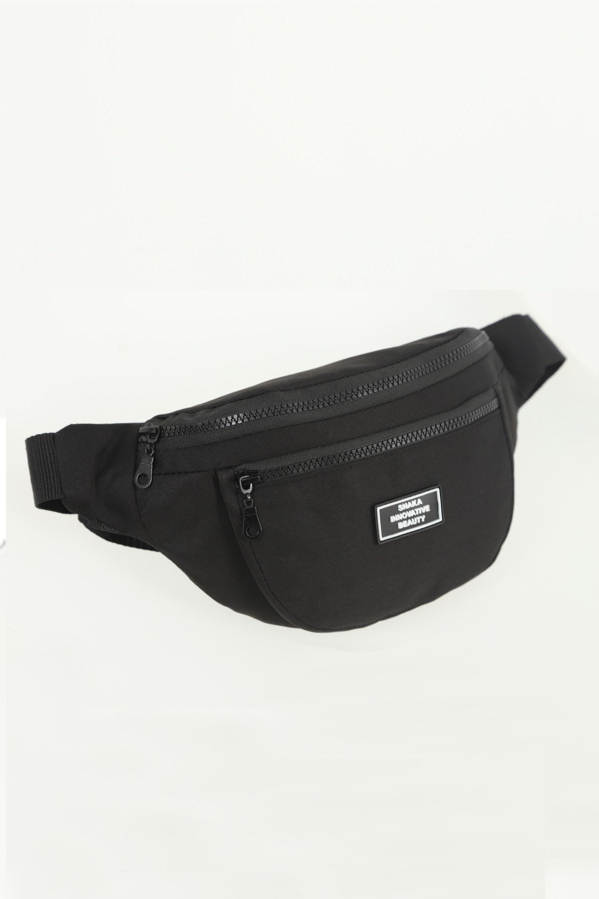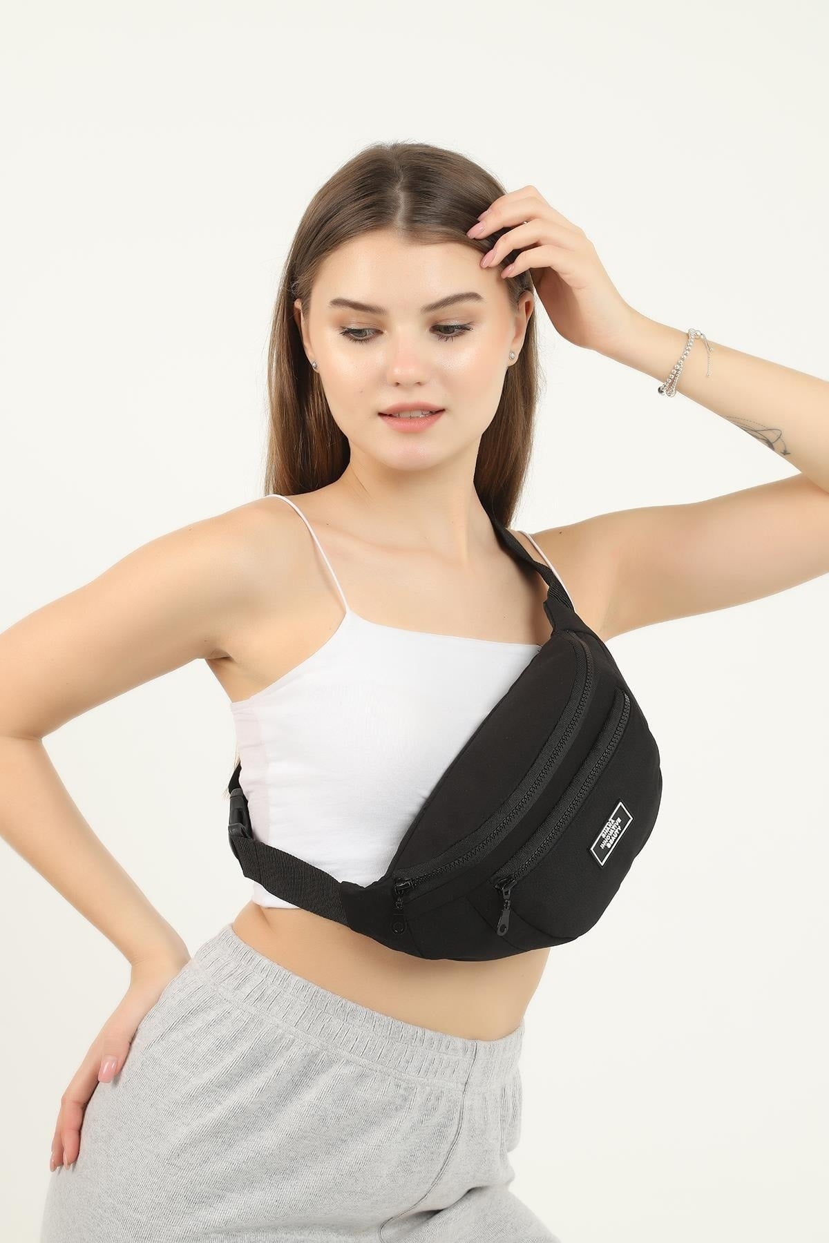 U8 Black 2 Compartment Unisex Waist Bag Width:38 Length:17 Width:7