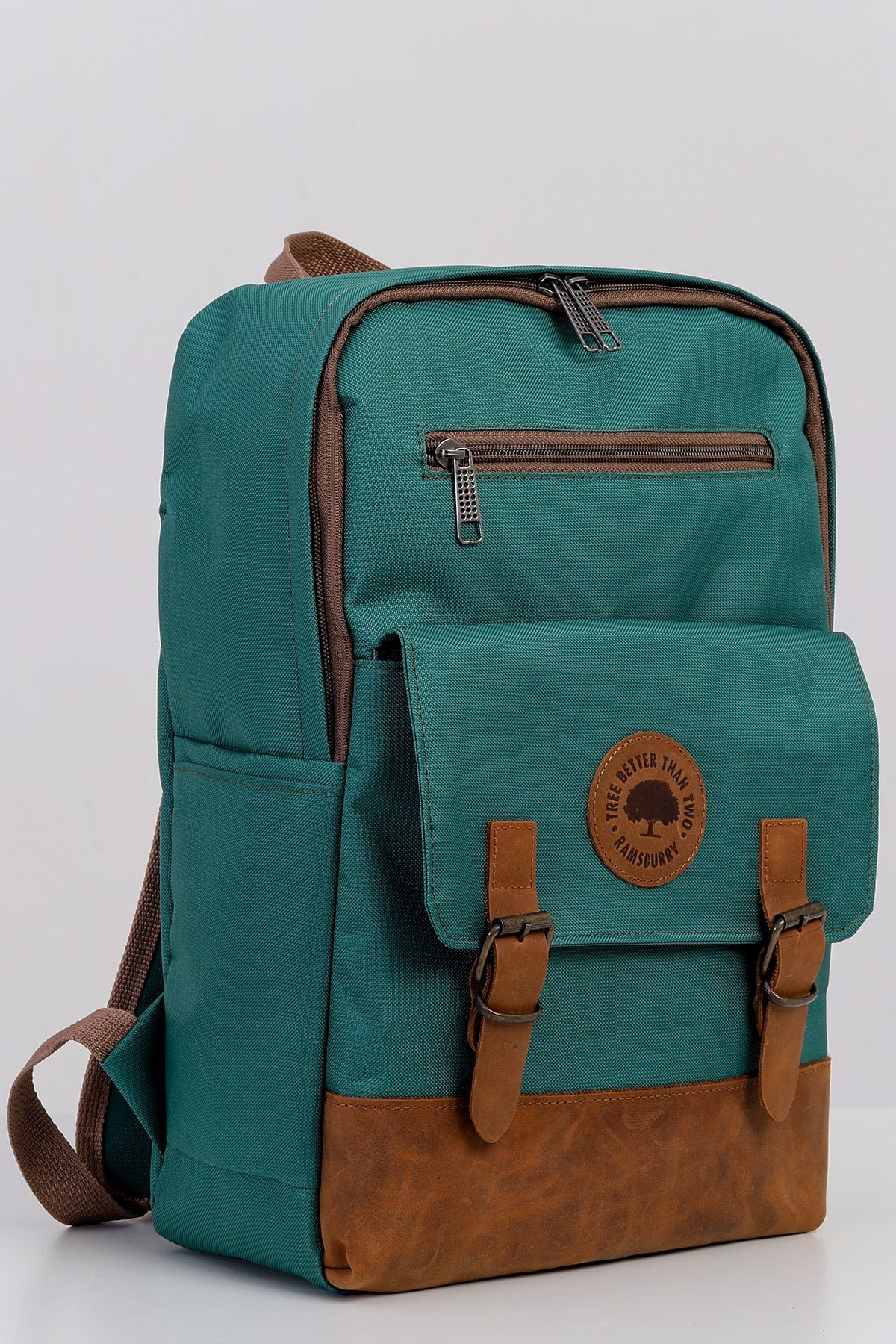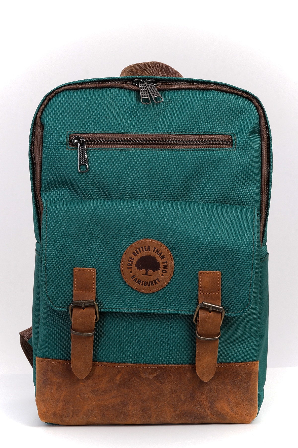 Unisex Green 100% Genuine Leather Detailed Waterproof 15.6 Inch Multi-Compartment Backpack With Laptop Compartment