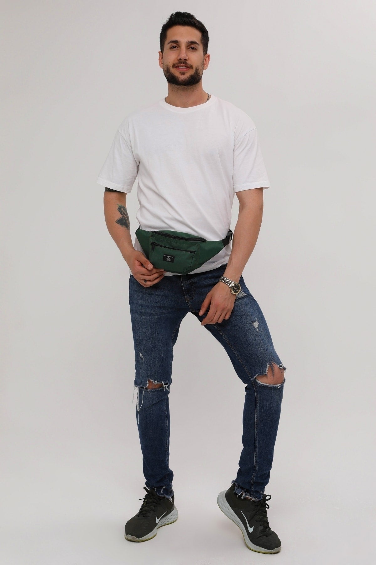 Unisex Khaki Shoulder And Waist Bag With 2 Compartments