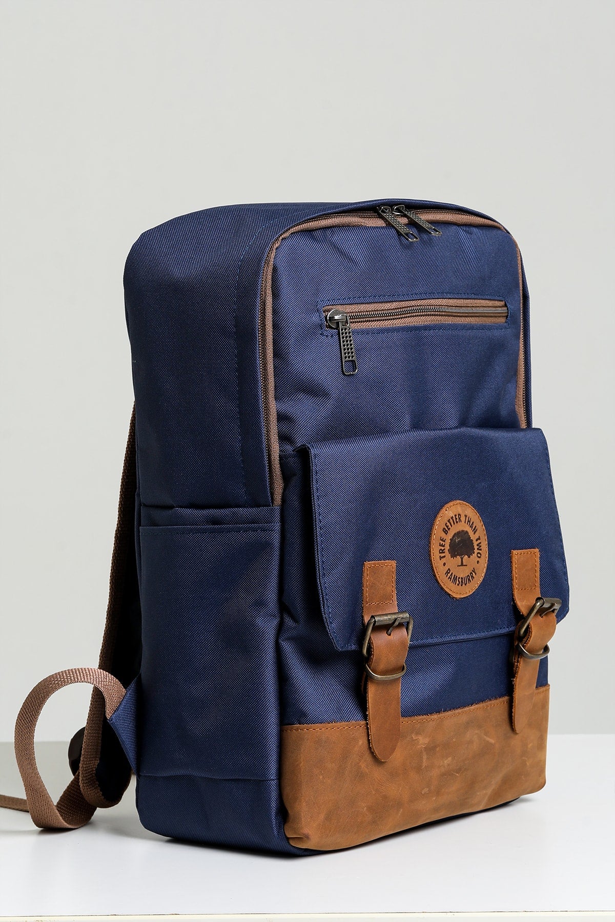 Unisex Navy 100% Genuine Leather Detailed Waterproof 15.6 Inch Multi-Compartment Backpack With Laptop Compartment