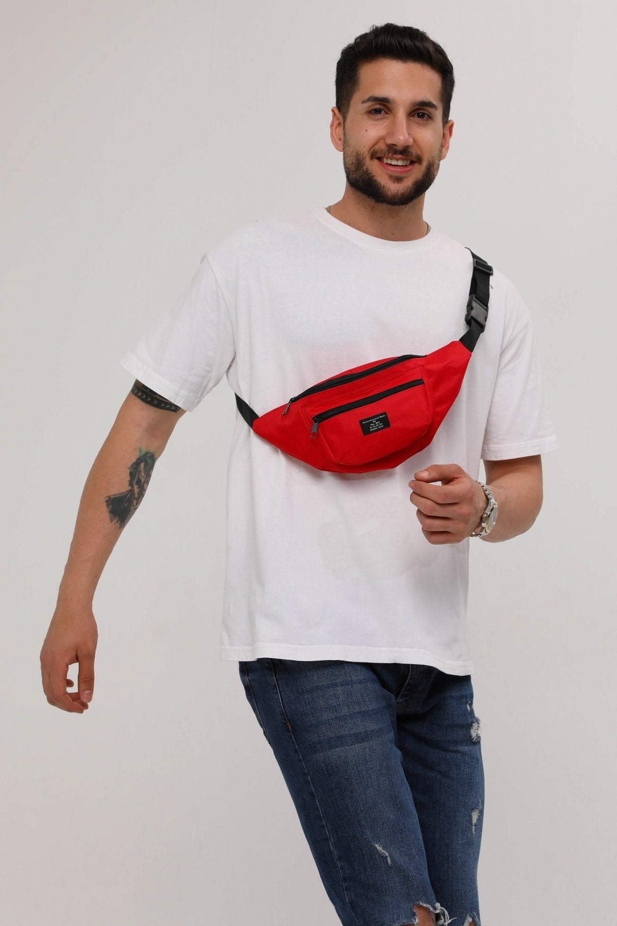 Unisex Red 2-Compartment Shoulder And Waist Bag