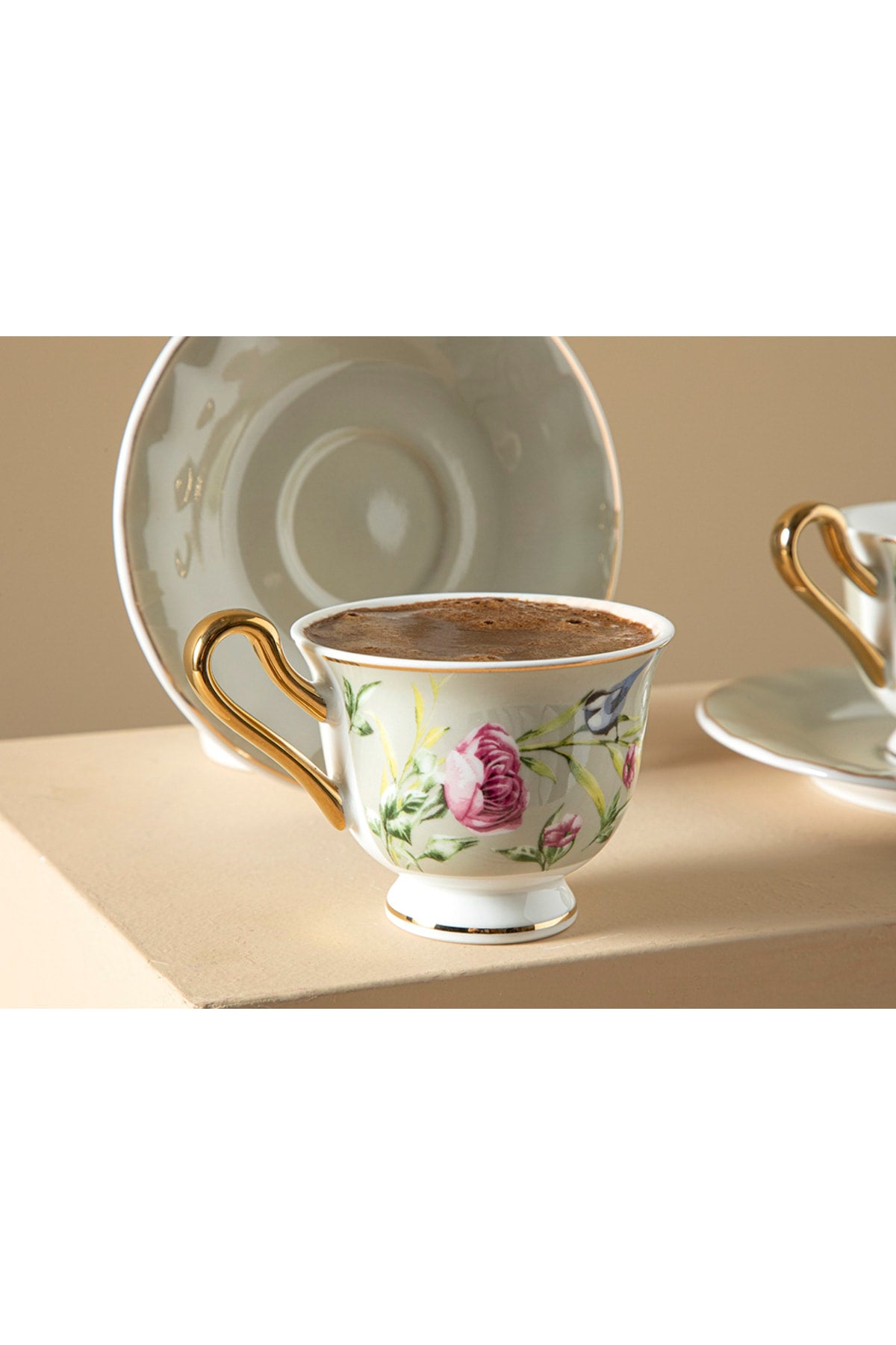 Vanilla New Bone China 4 Piece Coffee Cup Set For 2 Persons 90 Ml Light Gray
