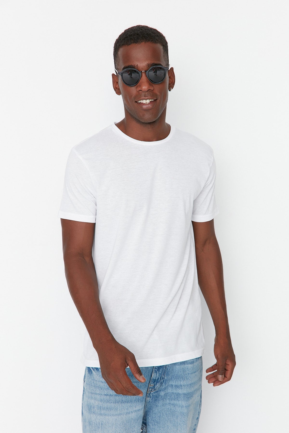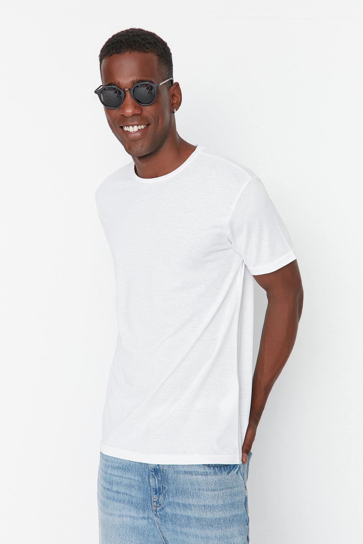 White Men'S Basic Regular Fit Crew Neck Short Sleeved T-Shirt