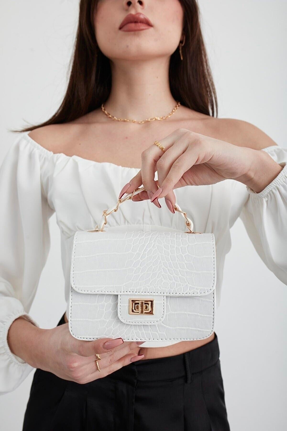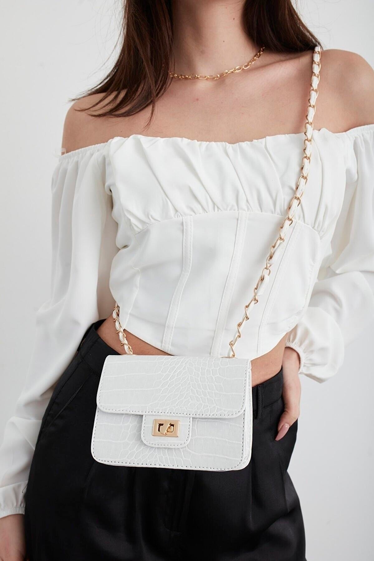 White Women'S Crocodile Patterned Mini Shoulder Bag