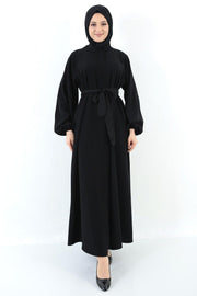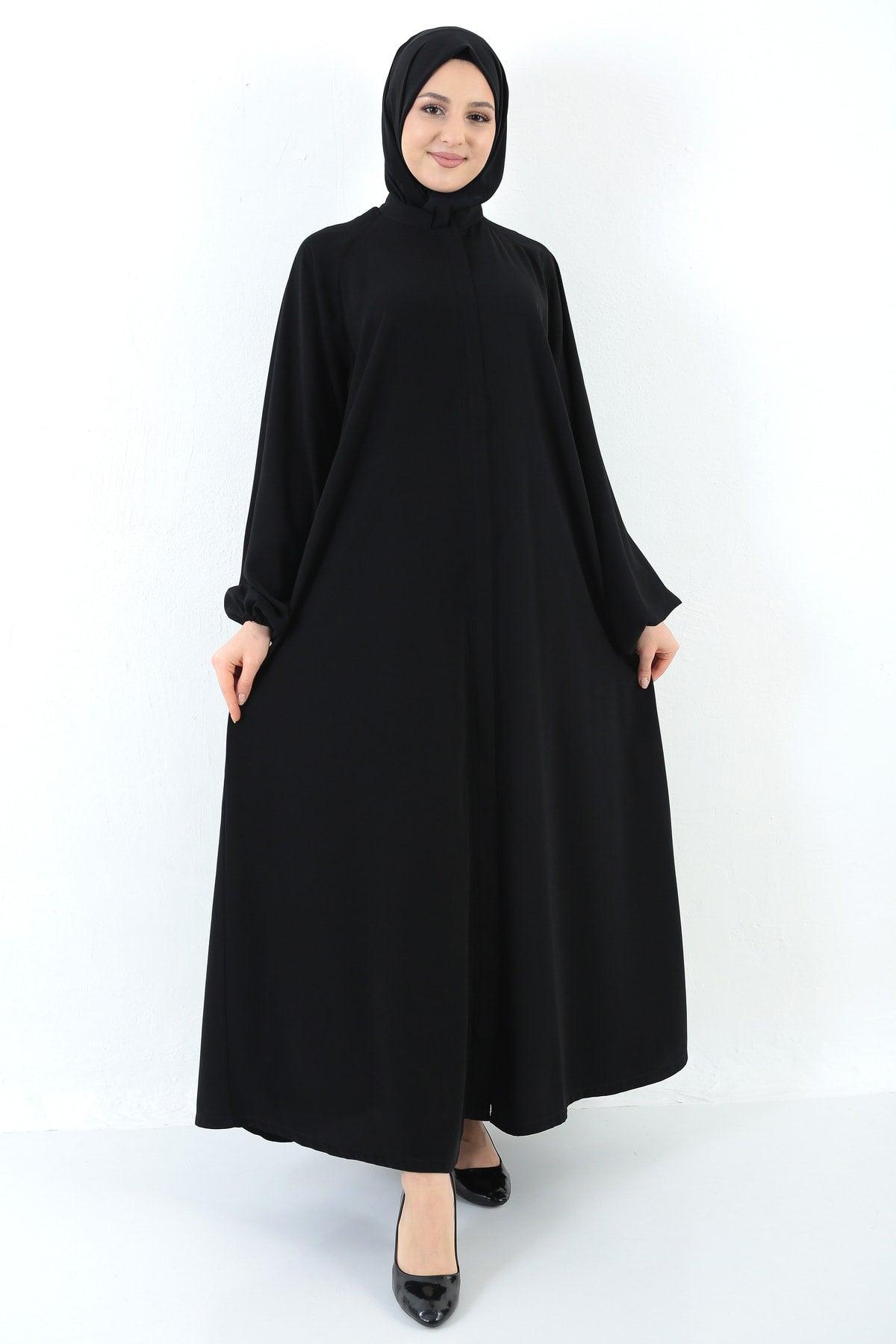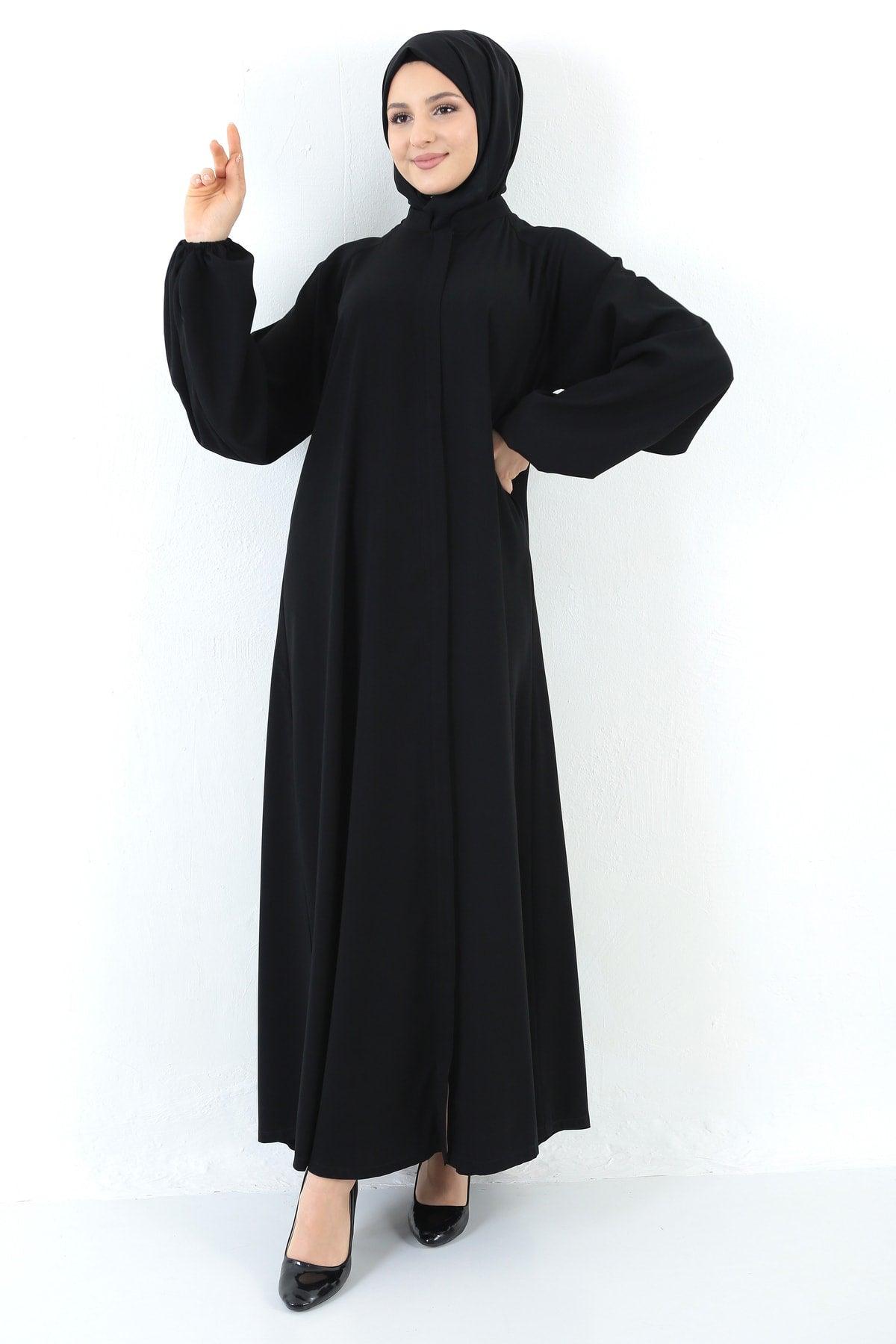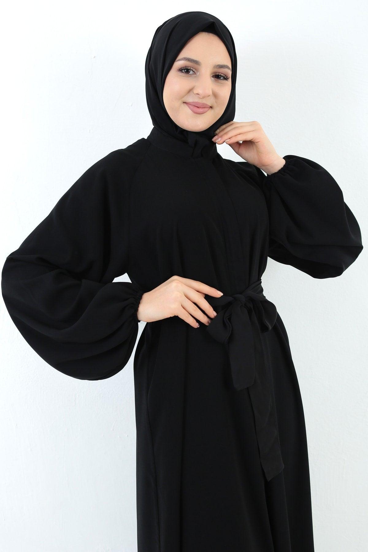 Women'S Black Zippered Zippered Belted Pocket Abaya Hijab