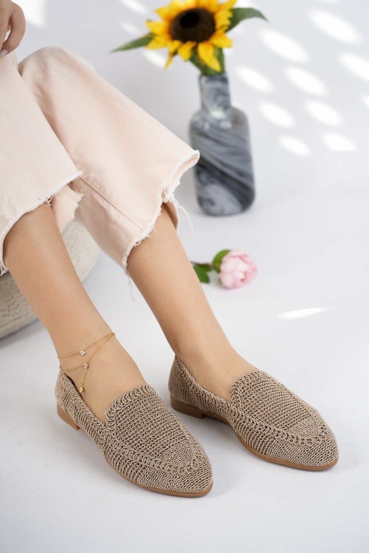 Women'S Knitted Flat Shoes Women'S Shoes Casual Shoes Mink