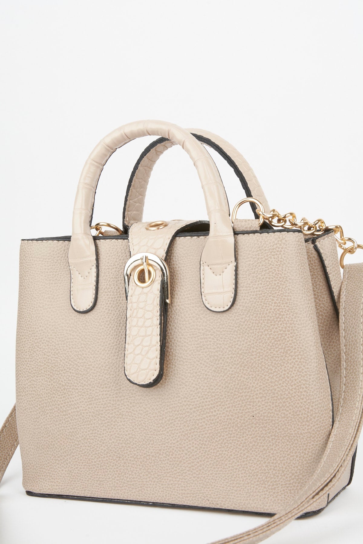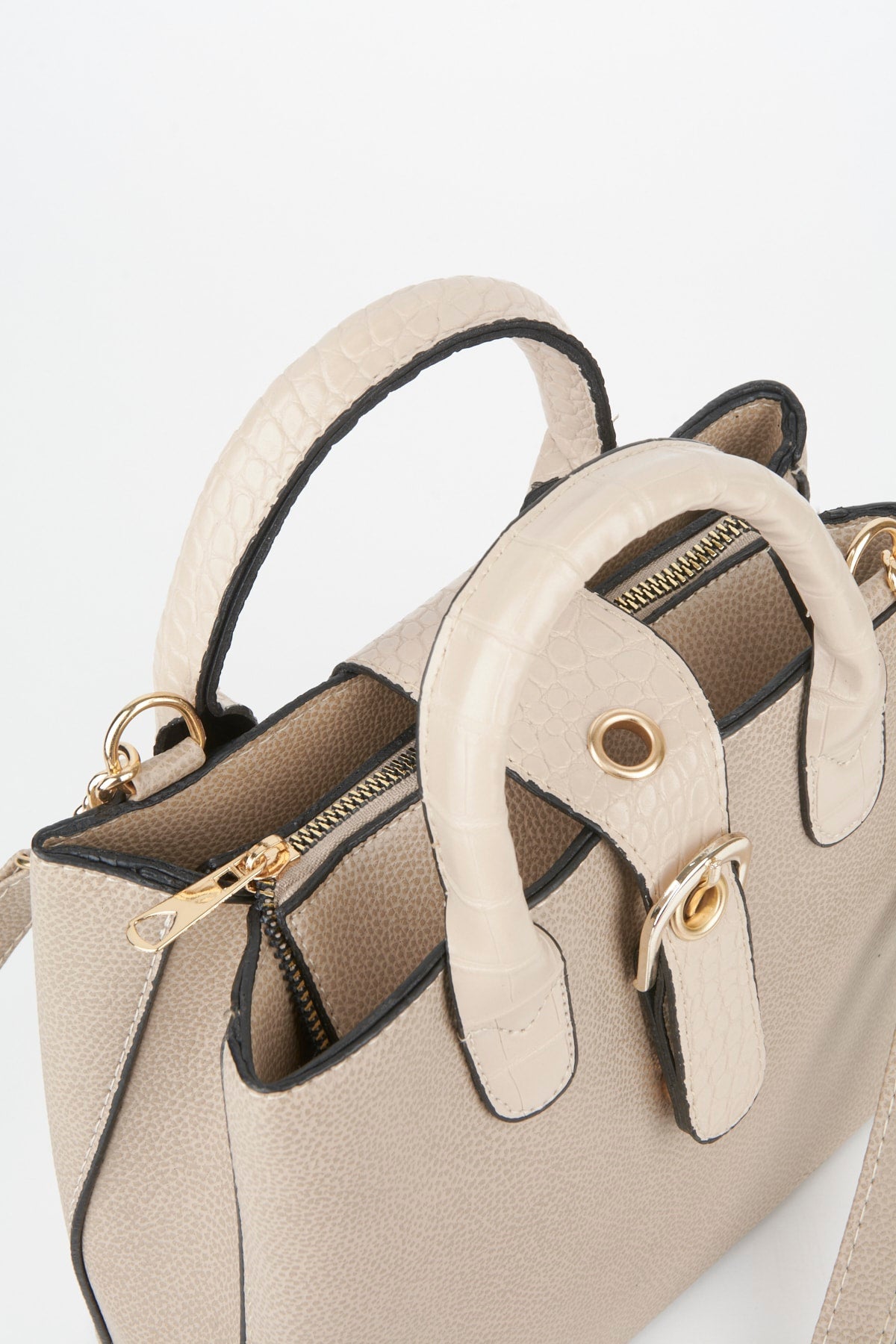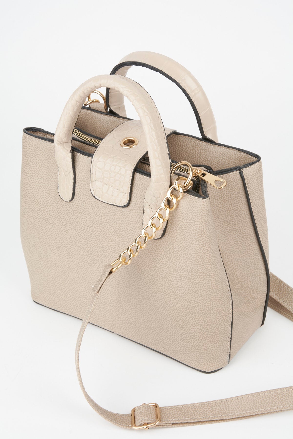 Women'S Mink Croco Handle 2 Compartment Snap Zipper Closure Hand And Shoulder Bag With Strap