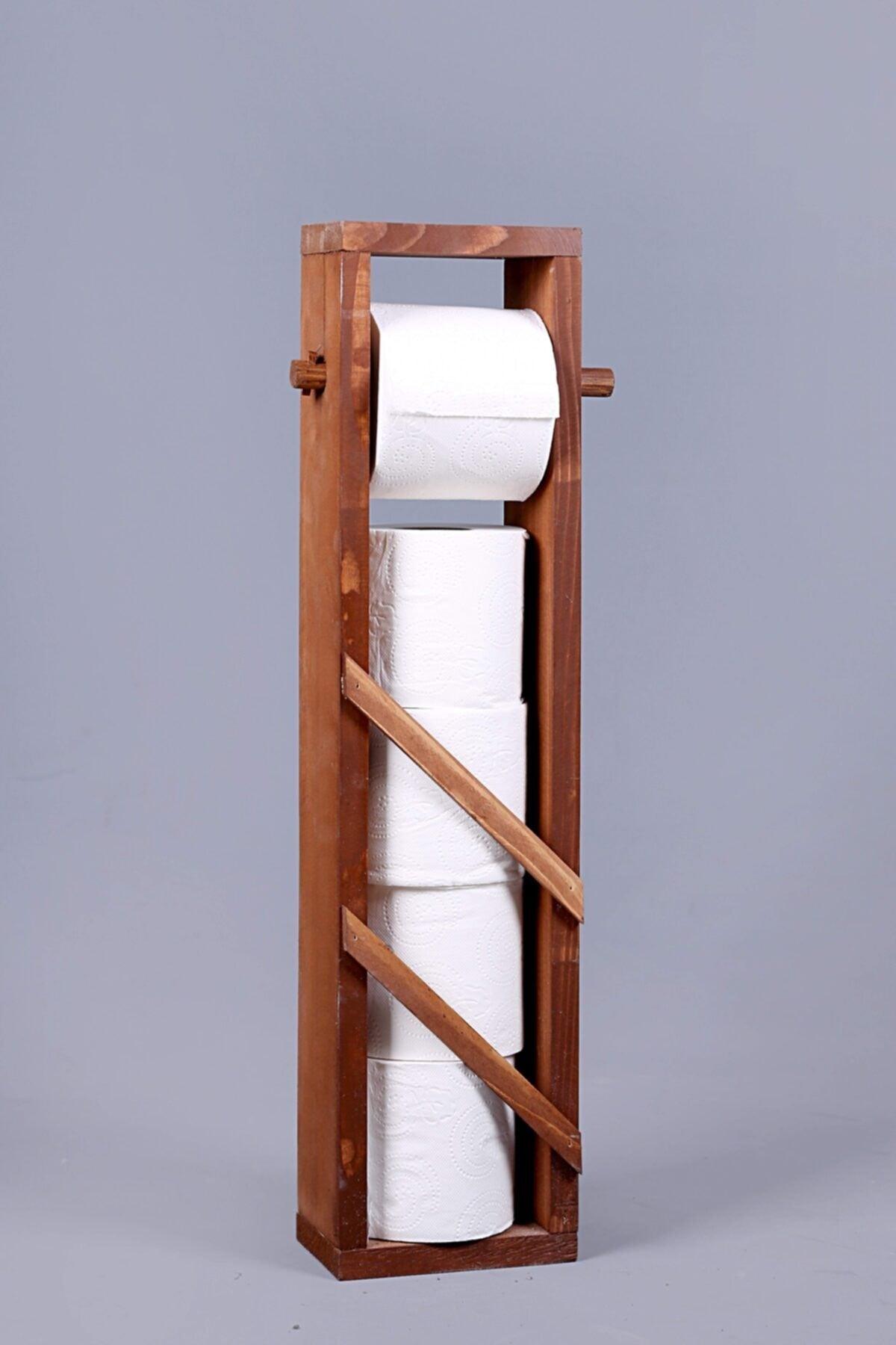 Support de papier toilette en bois WC Porte-papier avec 4 + 1 réservoir de rechange