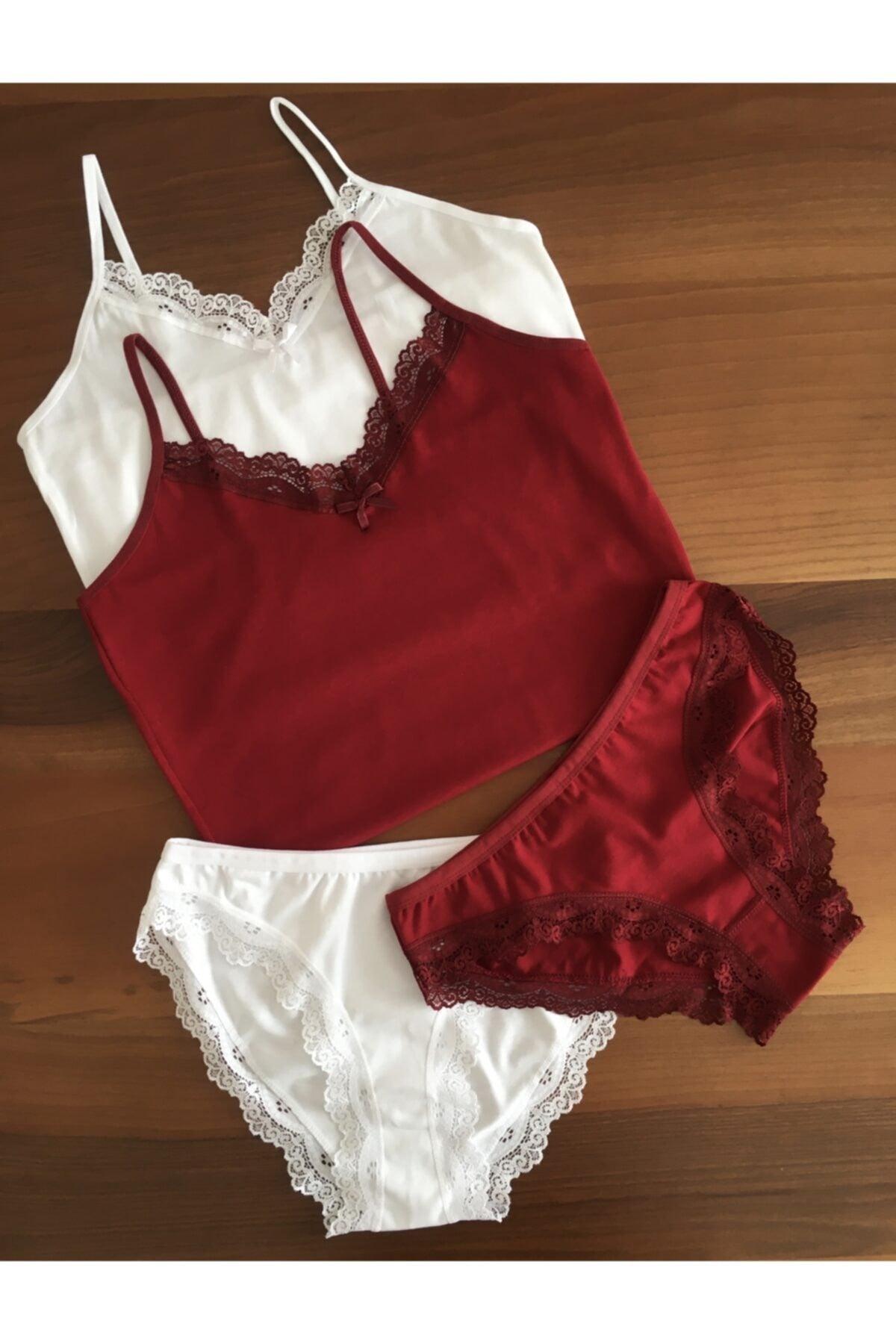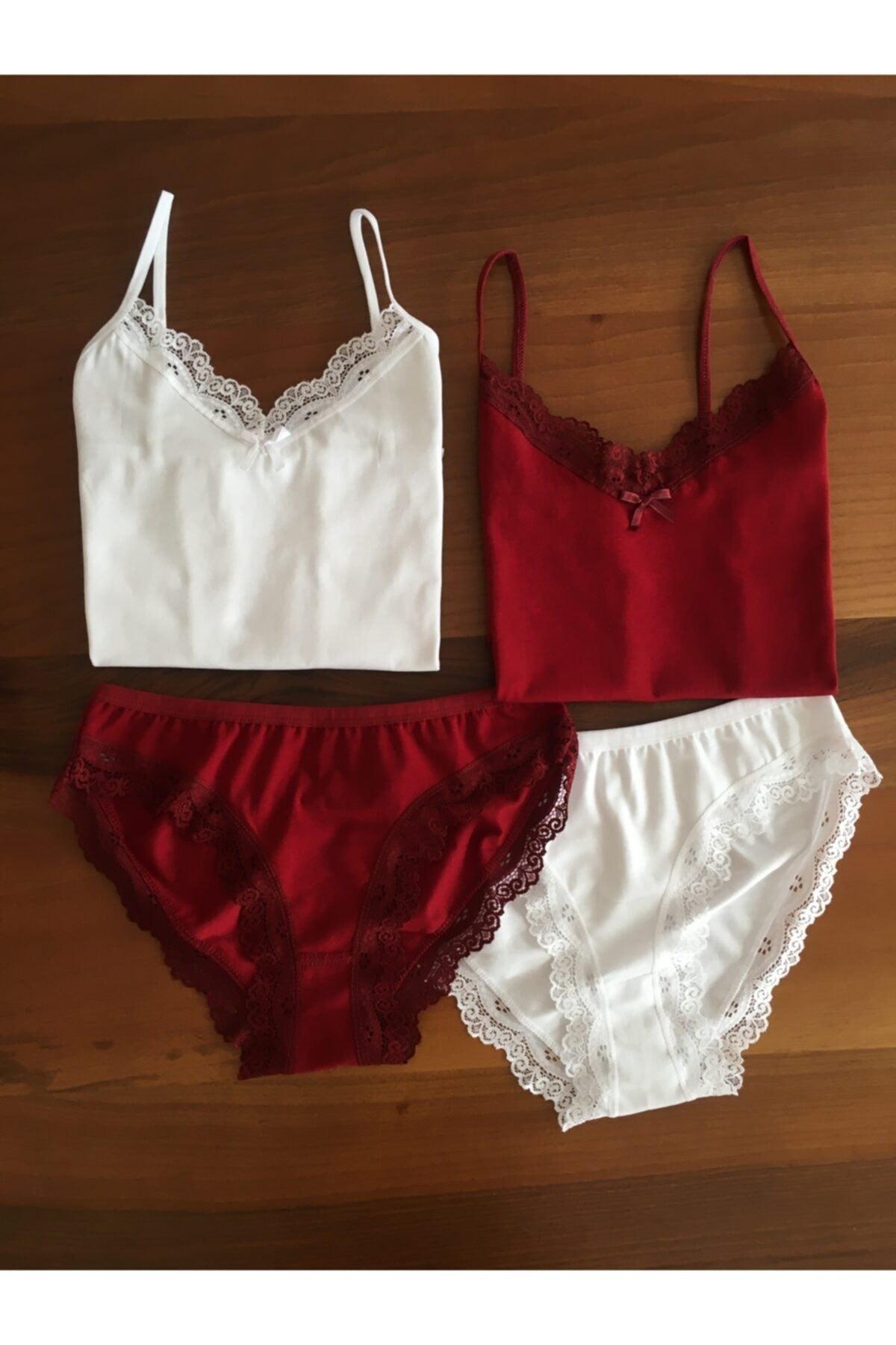 Claret Filet blanc rouge blanc Suspended Athlete Panty Set 2 pièces