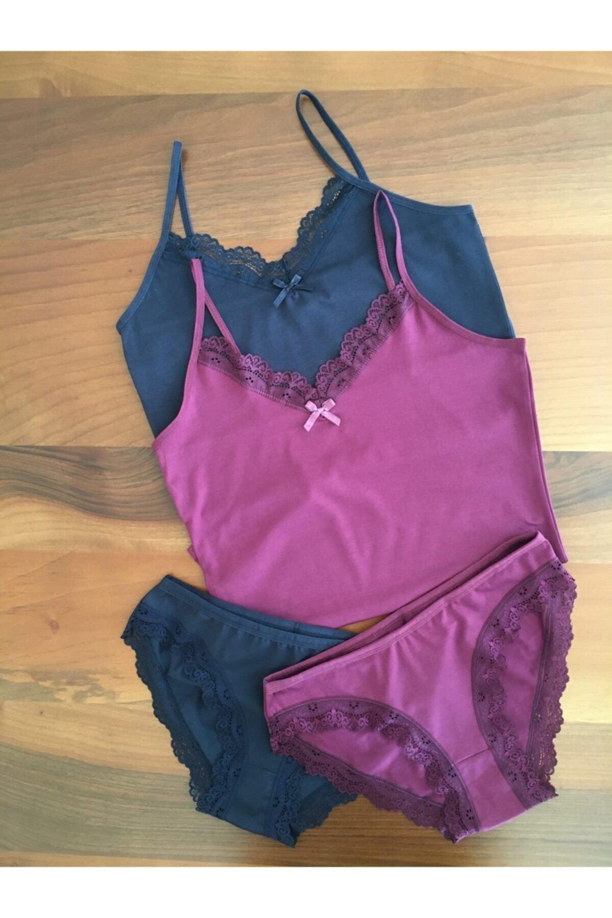 Frauen Ekru-Lacivert 2 STCK IP GEGURTET PERFERDE STRUPLFHOSEN SET