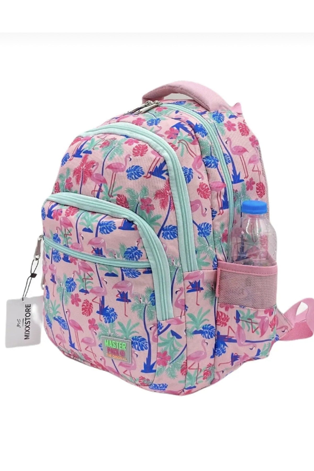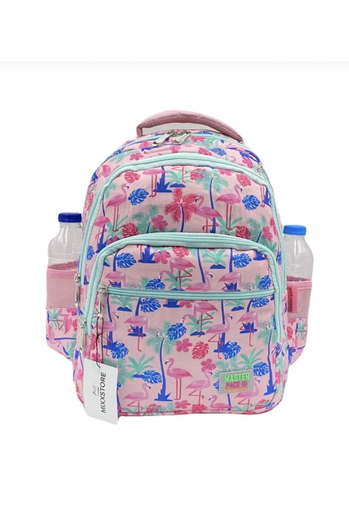 Flamingo Patterned Pink Color Master Pack Girl Backpack Primary School Bag With Food And Pencil Holder