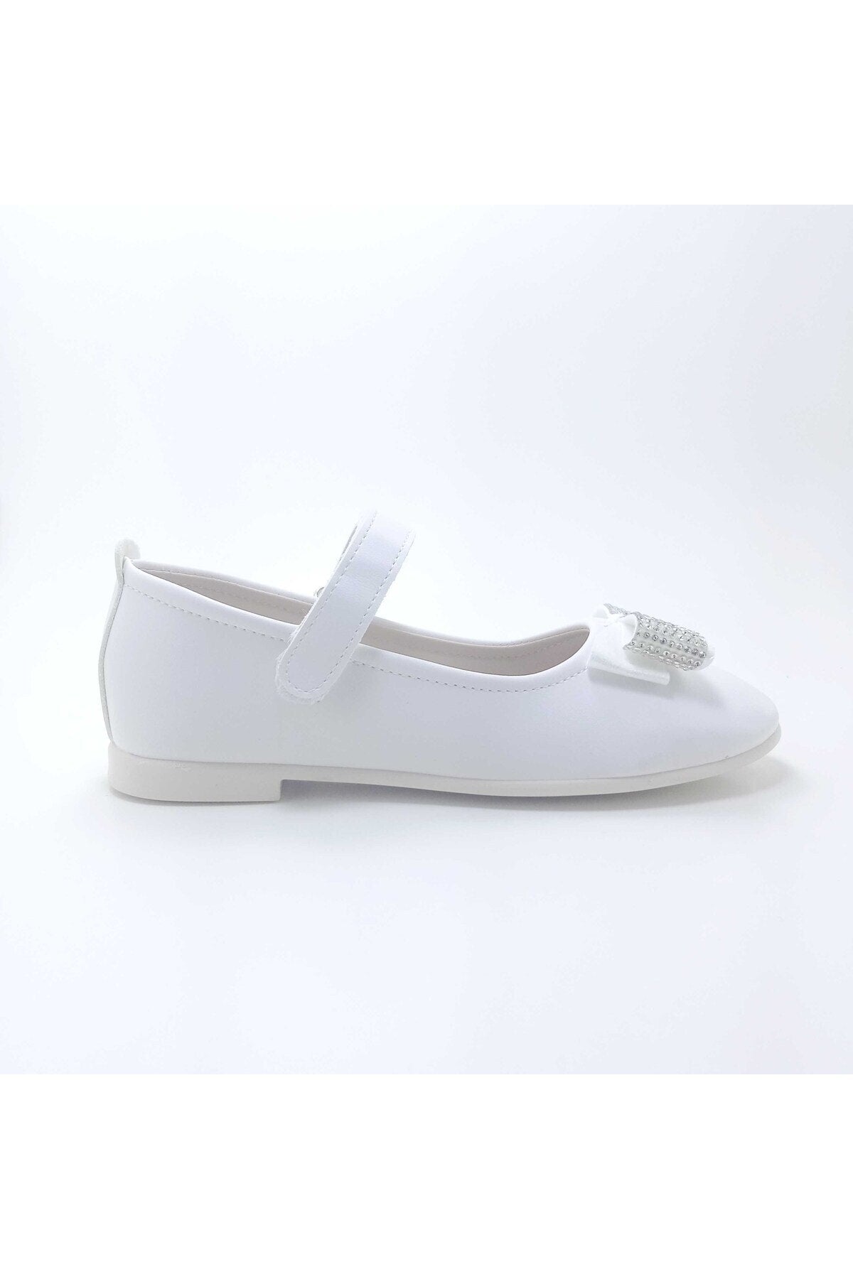 Girl'S Stone Bow White Orthopedic Flats