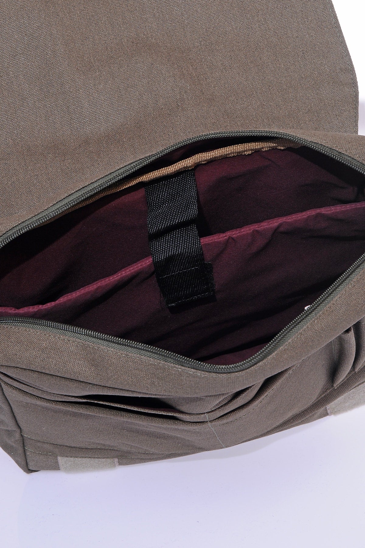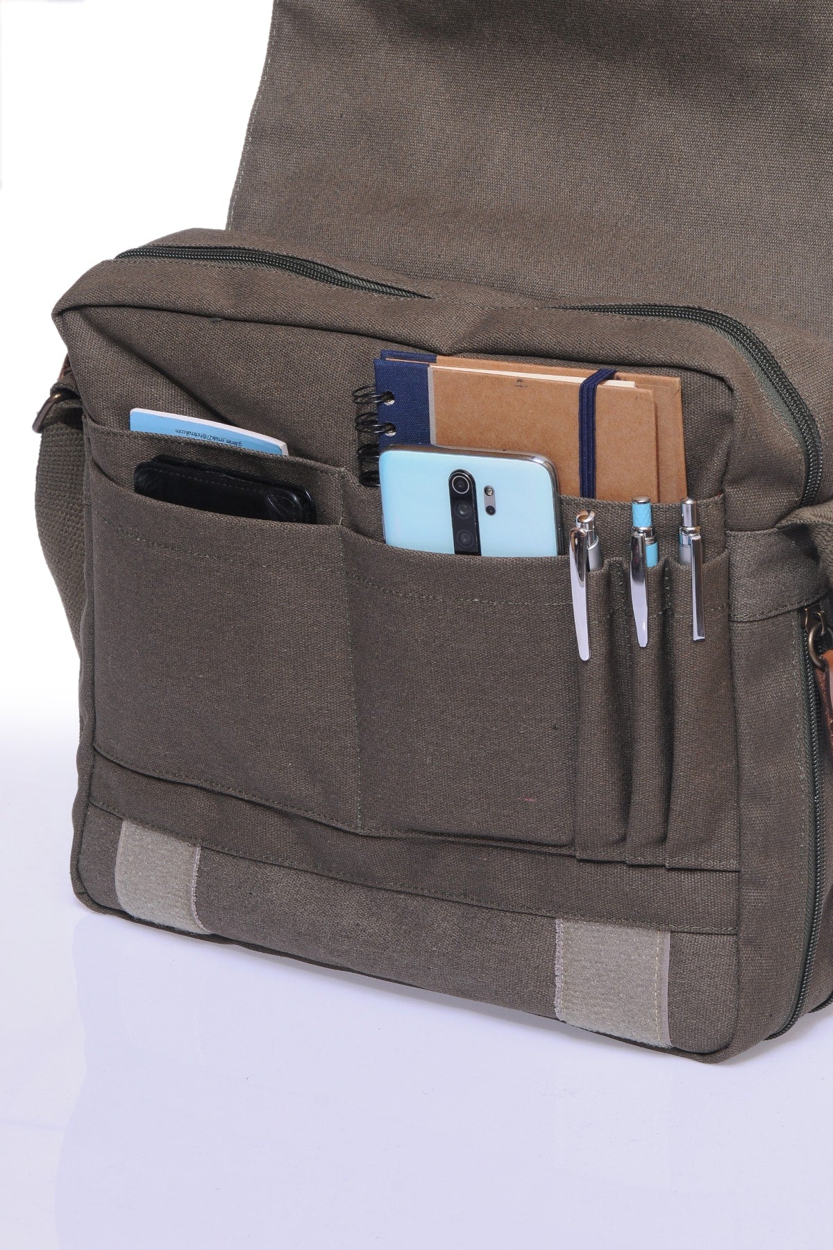 Gk12 Canvas Postman Flat Crossbody Bag Khaki