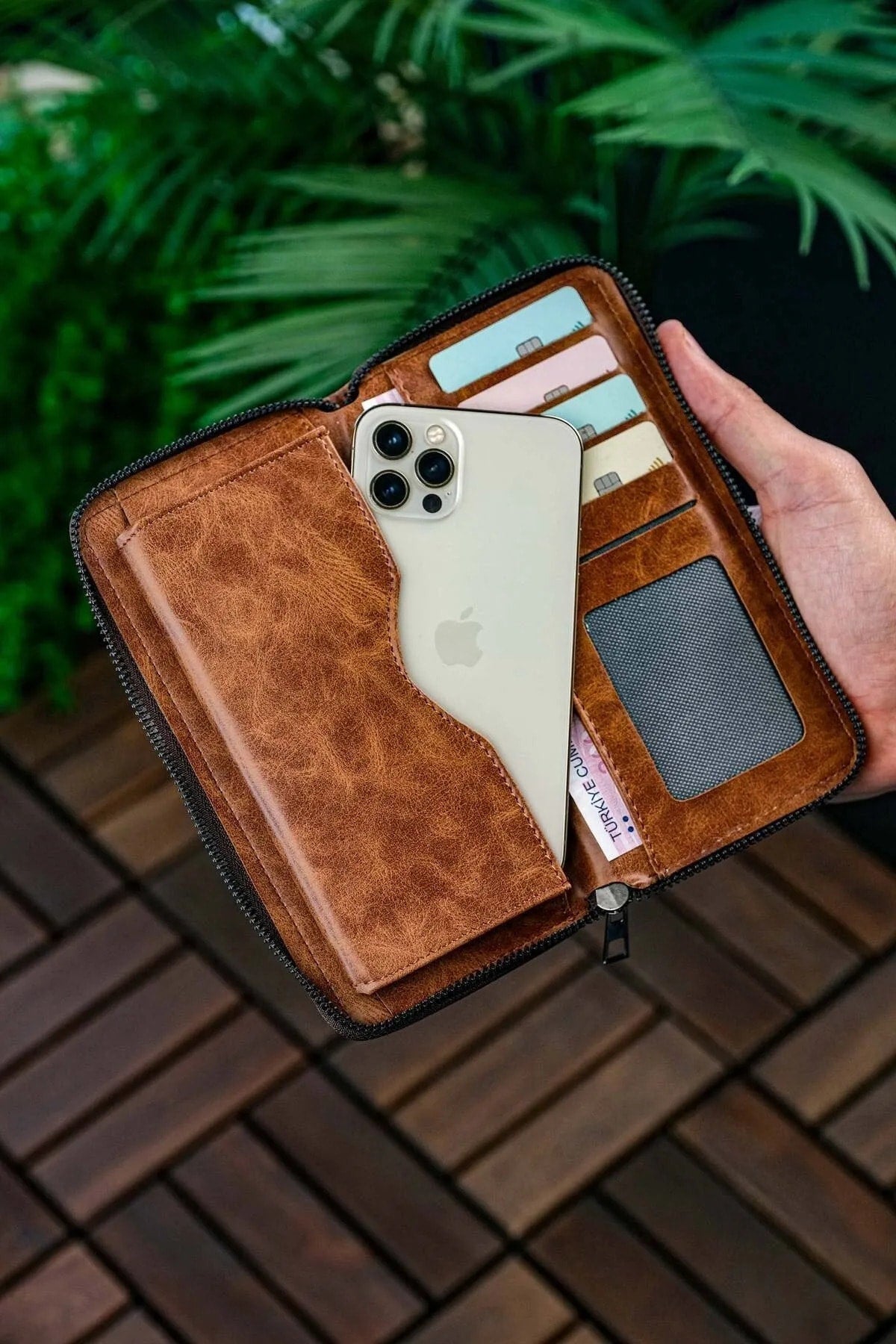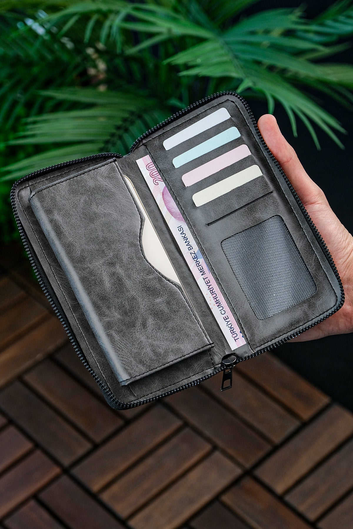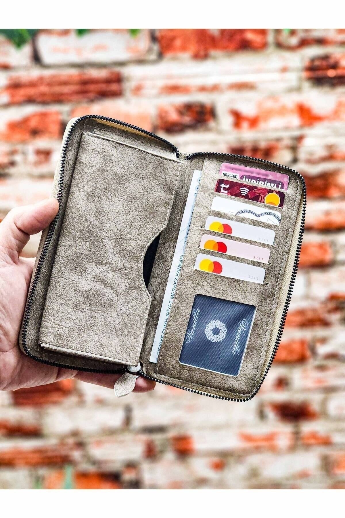 Unisex Vegan Leather Card Holder Wallet With Phone Compartment Xclub Model