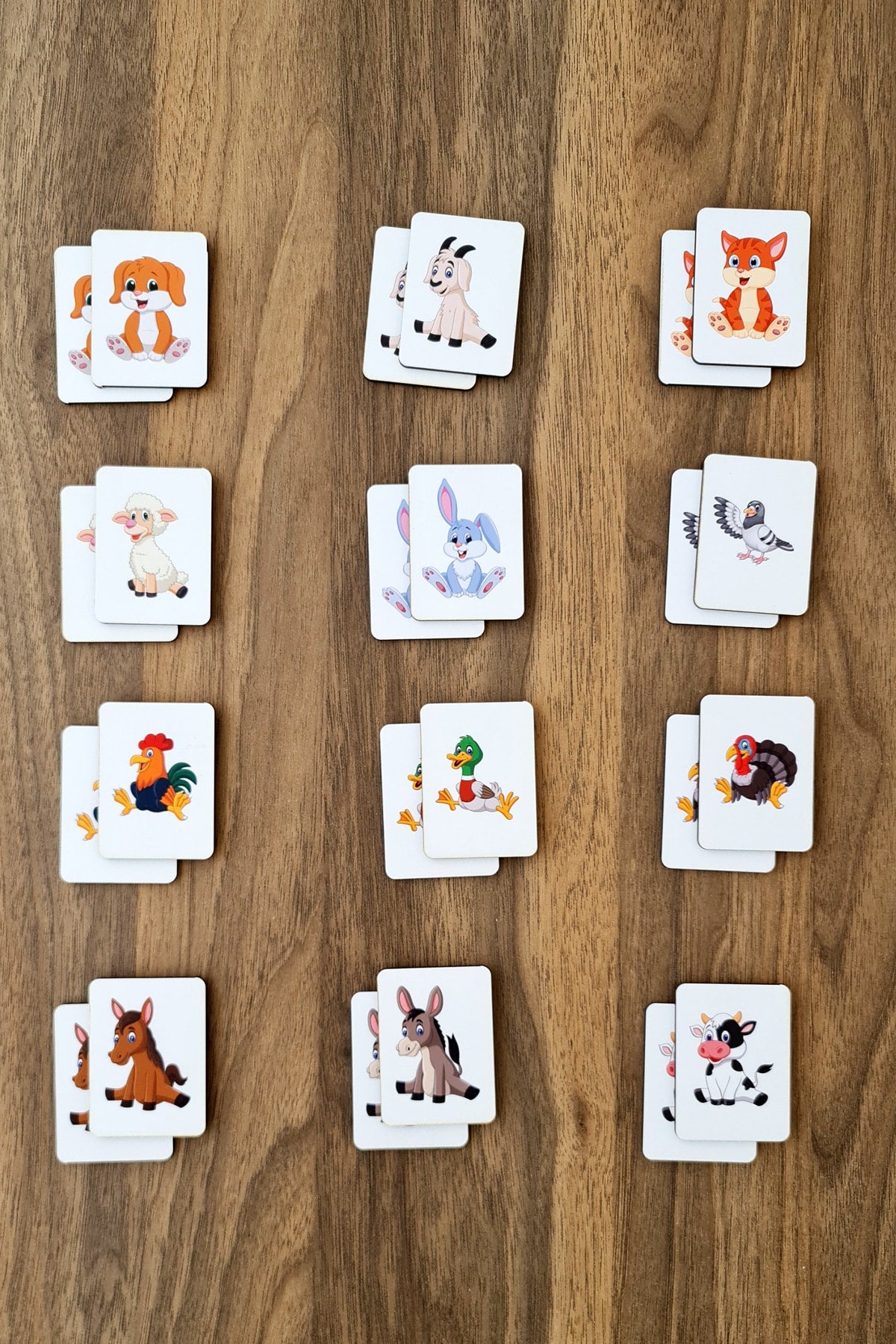 Wooden Cute Farm Animals Brain Teaser Cards Matching Game Preschool Educational Material
