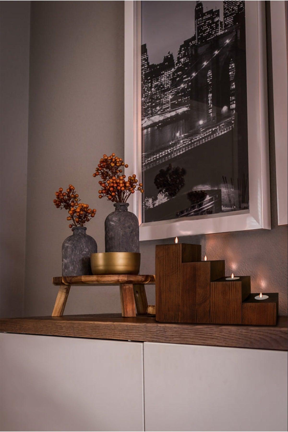 Decorative Wooden Candlestick Candle Holder Set Of 4