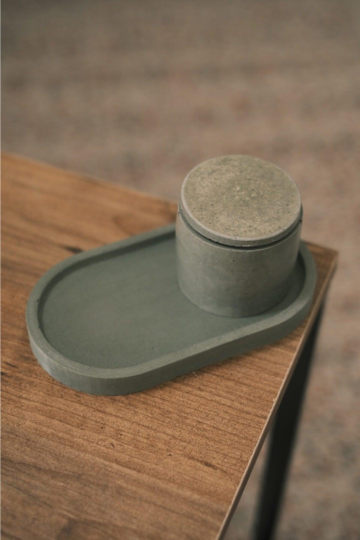 Handmade Flat Concrete Candle Holder With Lid, Concrete Bottom Tray, Soy Candle