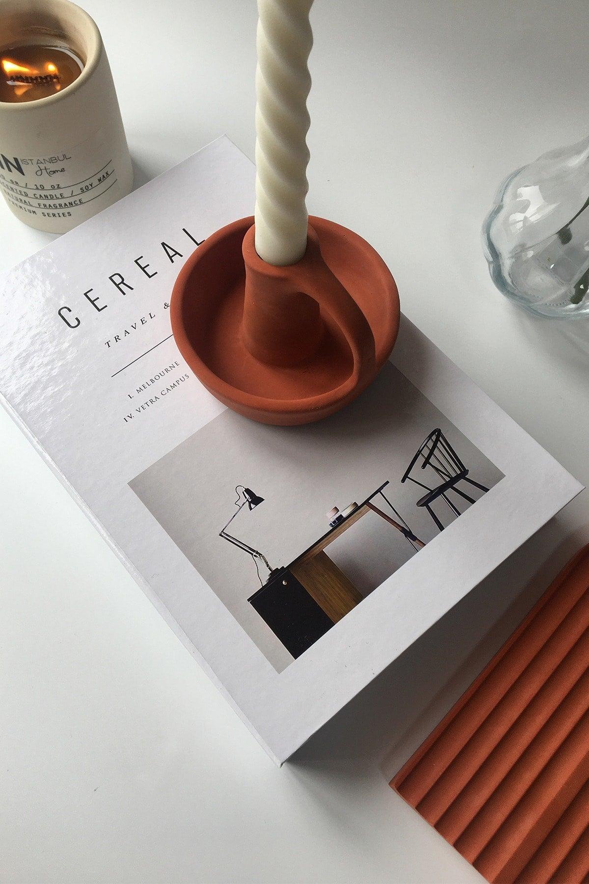 Handled Candlestick Candle Holder Concrete Terracotta