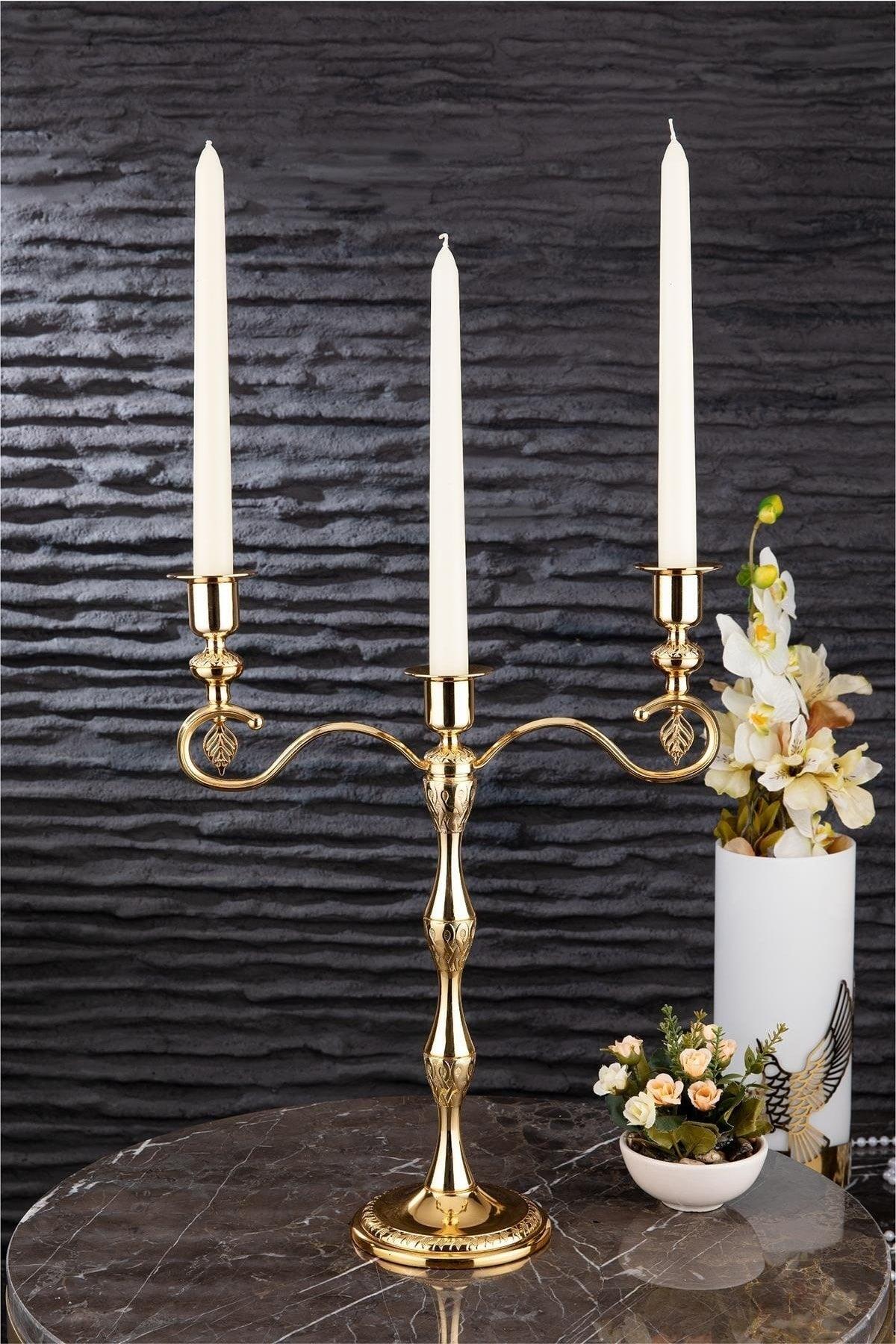 Işıl 2 Li Gold Modern Decorative Candlestick Candle Holder