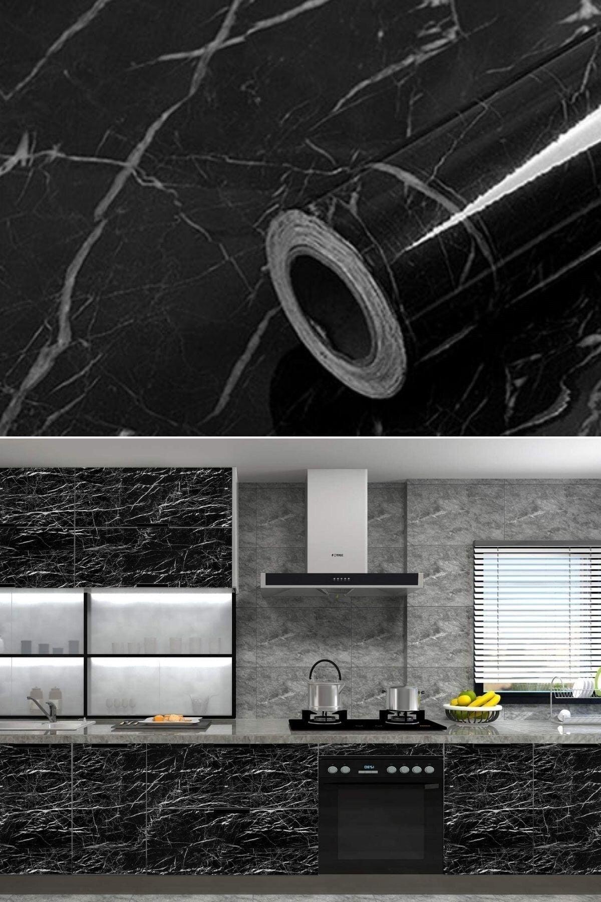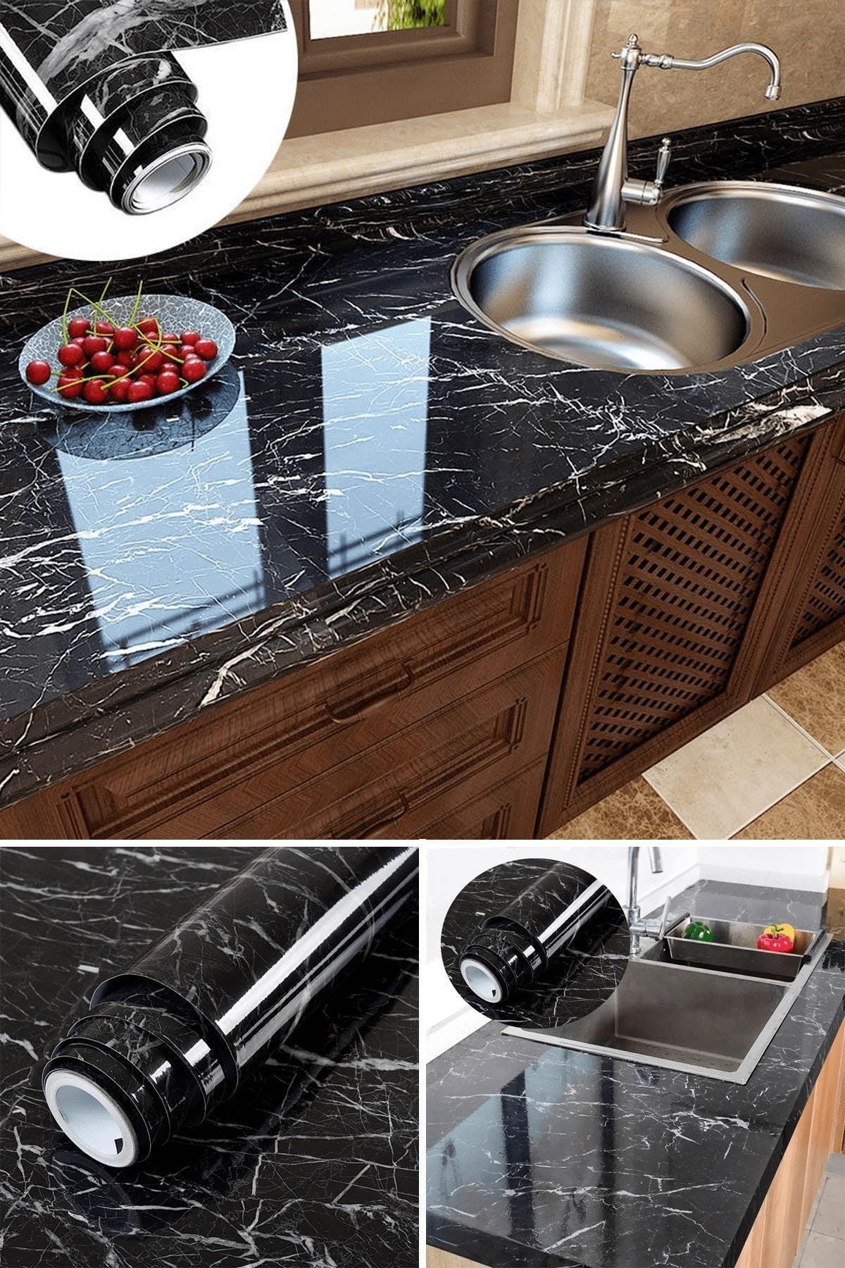 ® 5 מ"ט X 60 ס"מ מדבקת נייר כסף עמיד למים שולחן שולחן בדוגמת שיש למטבח שחור