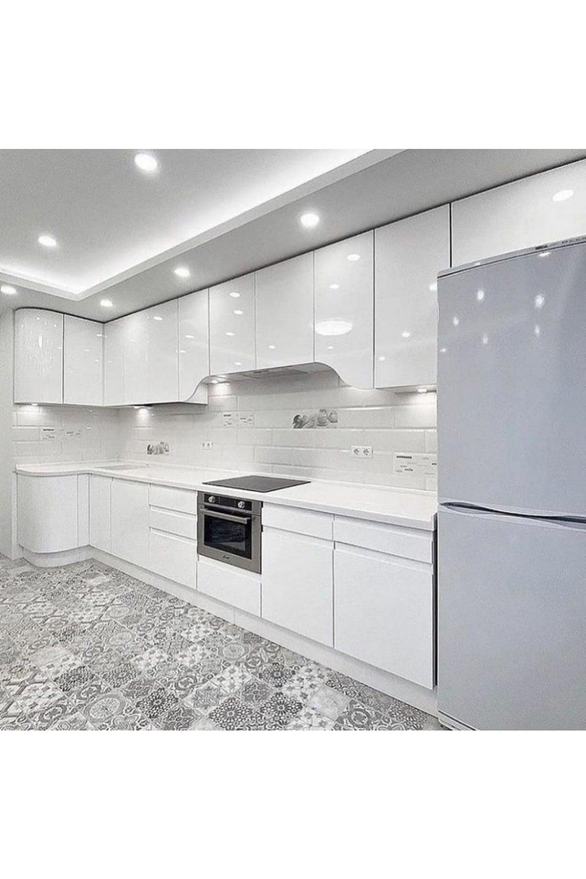 רצפת מטבח עמיד למים אריחי שיש לבן ארון קיר שולחן כיסוי נייר דבק
