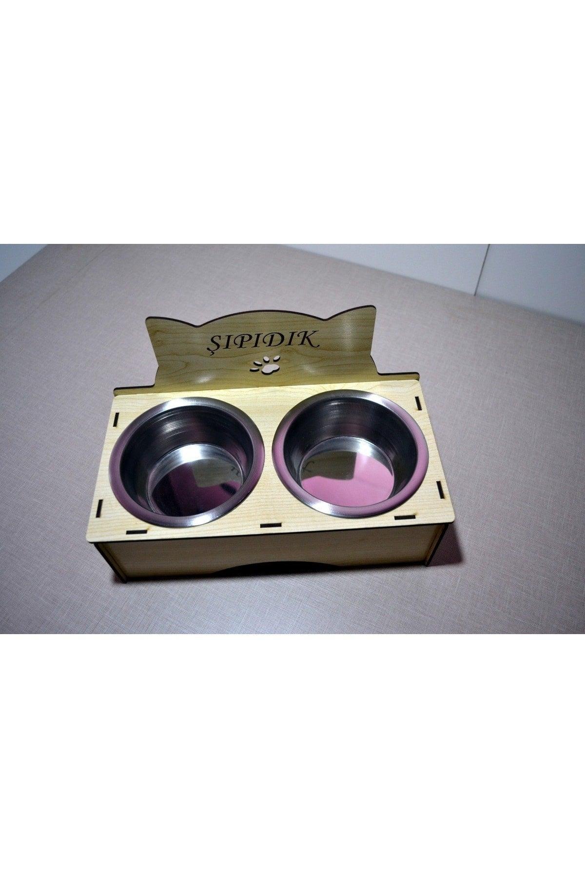 עיצוב עץ לקערת אוכל לכלב וחתול מעמד קערת מים לחתול ולכלב בהדפסה אישית