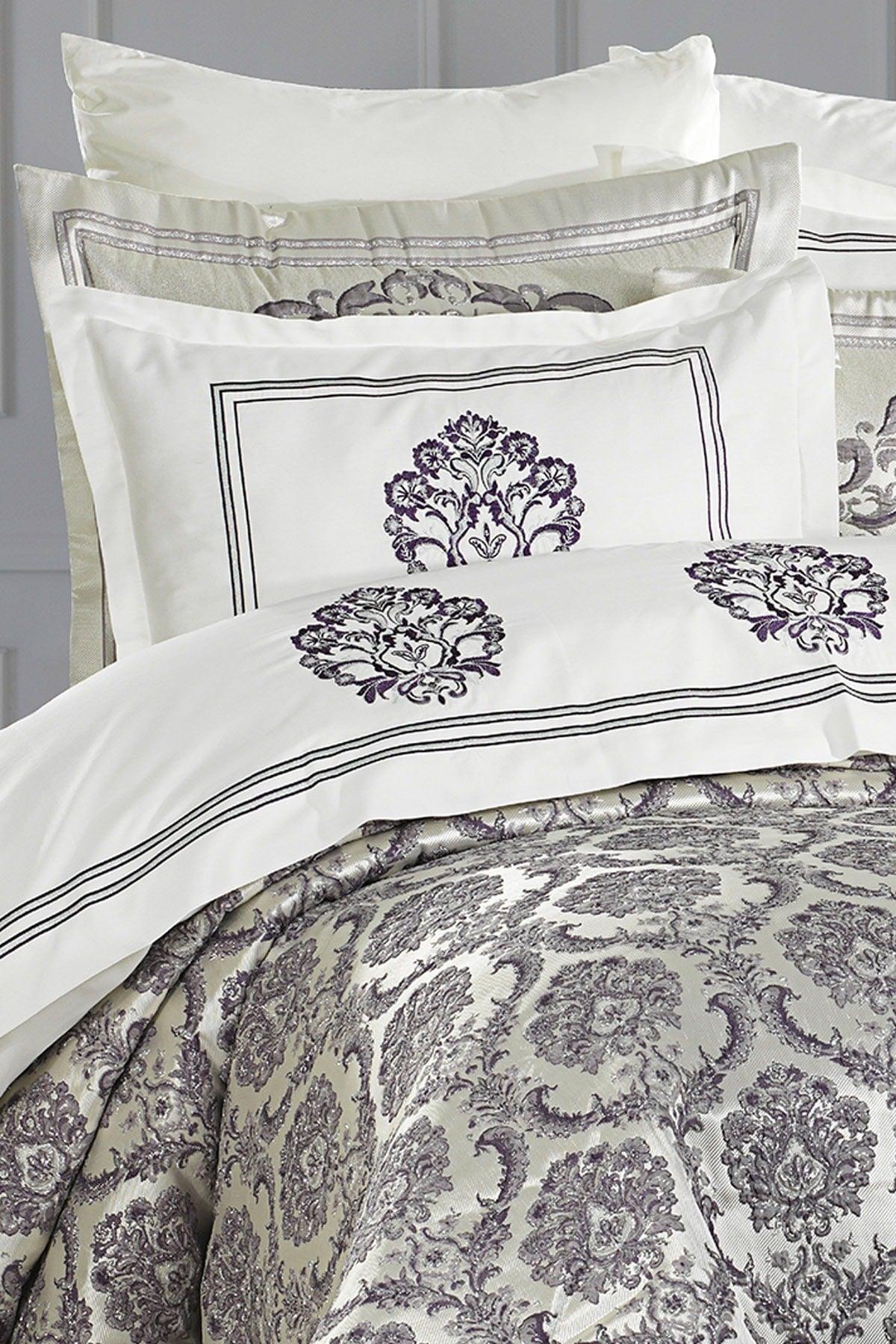 סט נדוניה לורן 10 חלקים כיסוי פוך כפול לילך/כסף