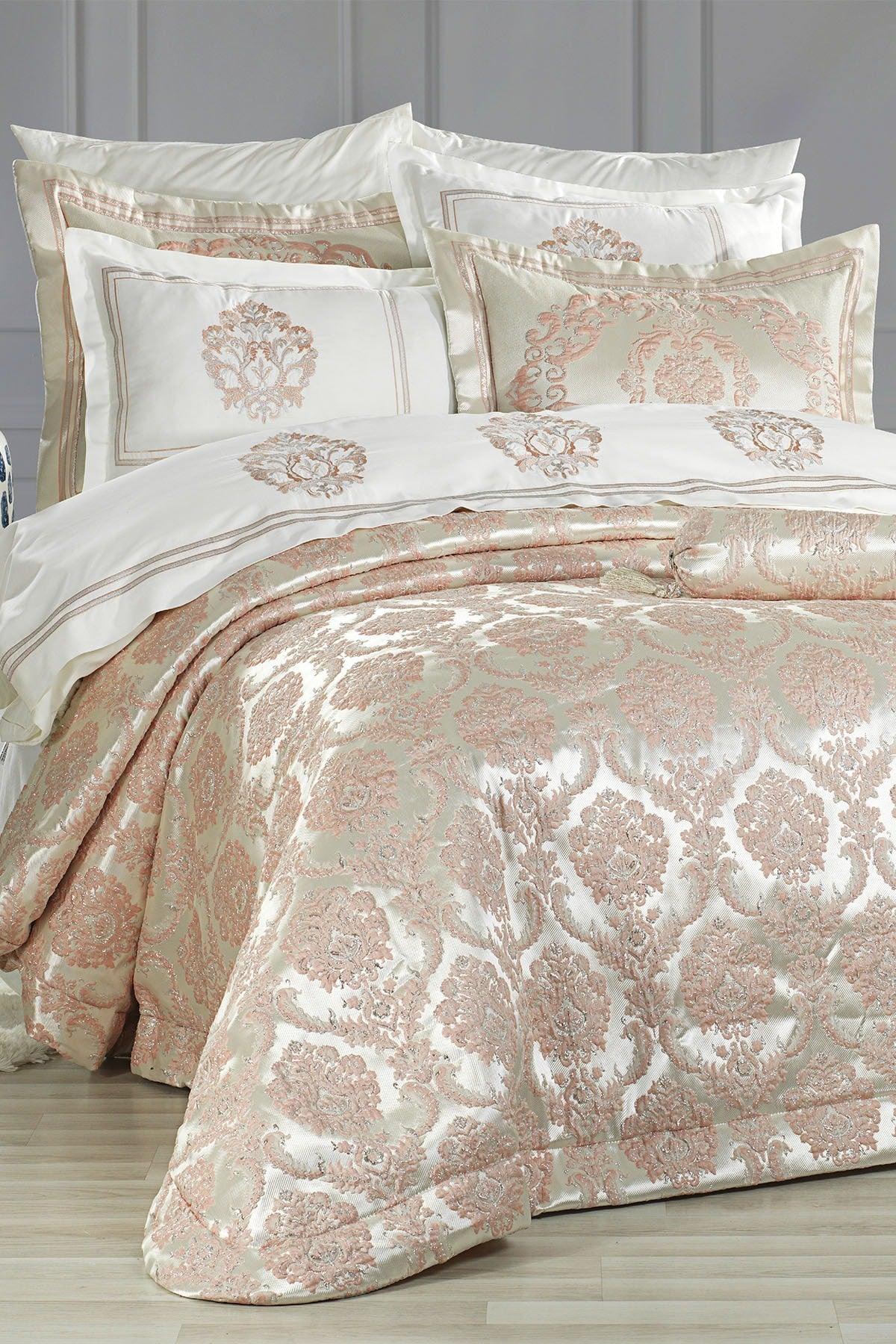 סט נדוניה לורן 10 חלקים כיסוי שמיכת פוך כפול ורוד/כסף