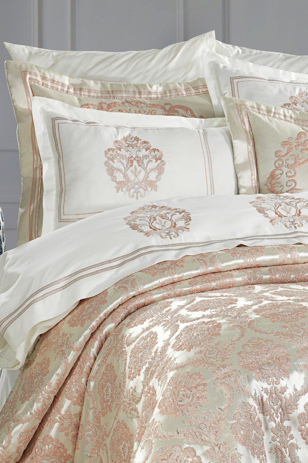סט נדוניה לורן 10 חלקים כיסוי שמיכת פוך כפול כיסוי מיטה/זהב