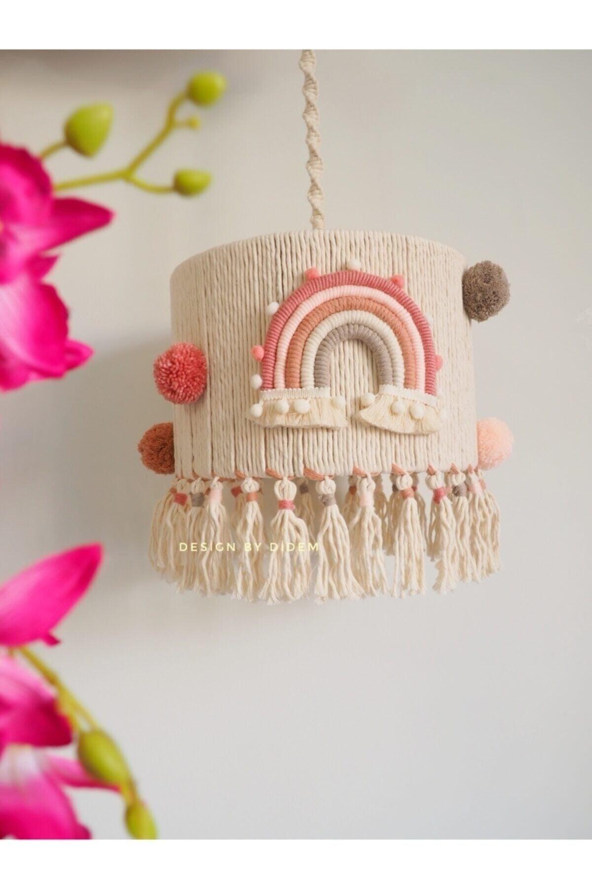 Ecru Rainbow Macrame נברשת לחדרי תינוקות וילדים