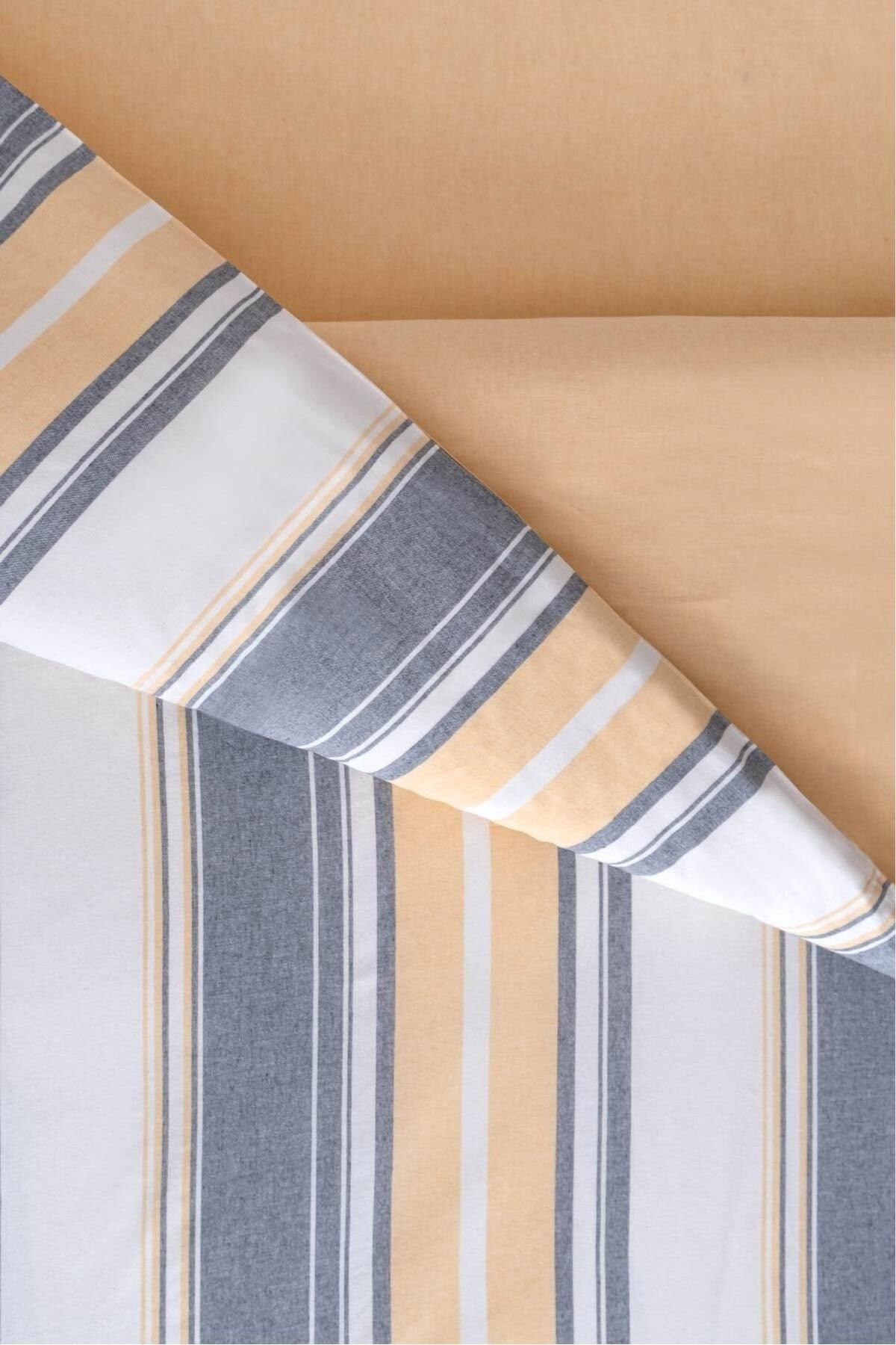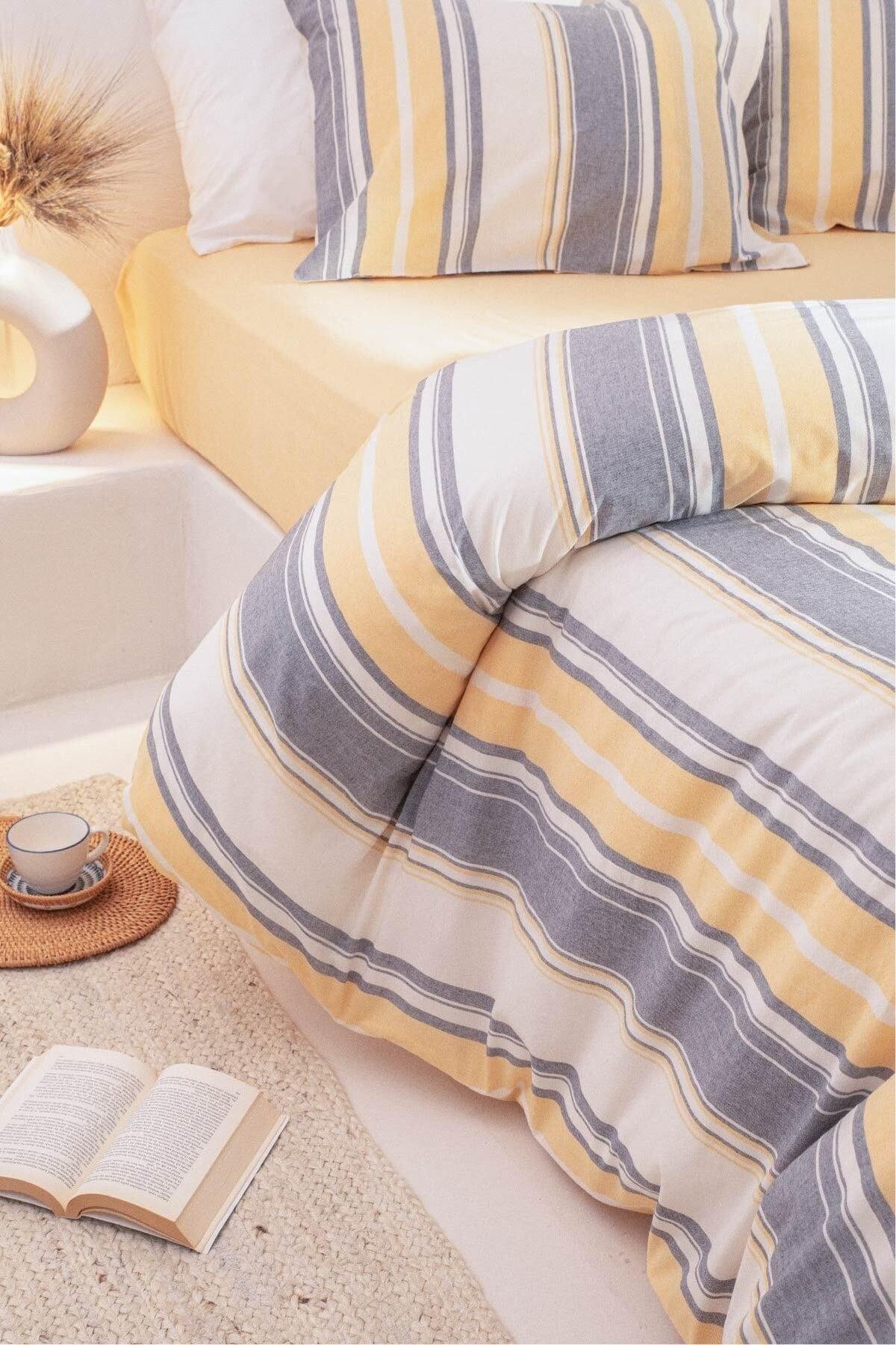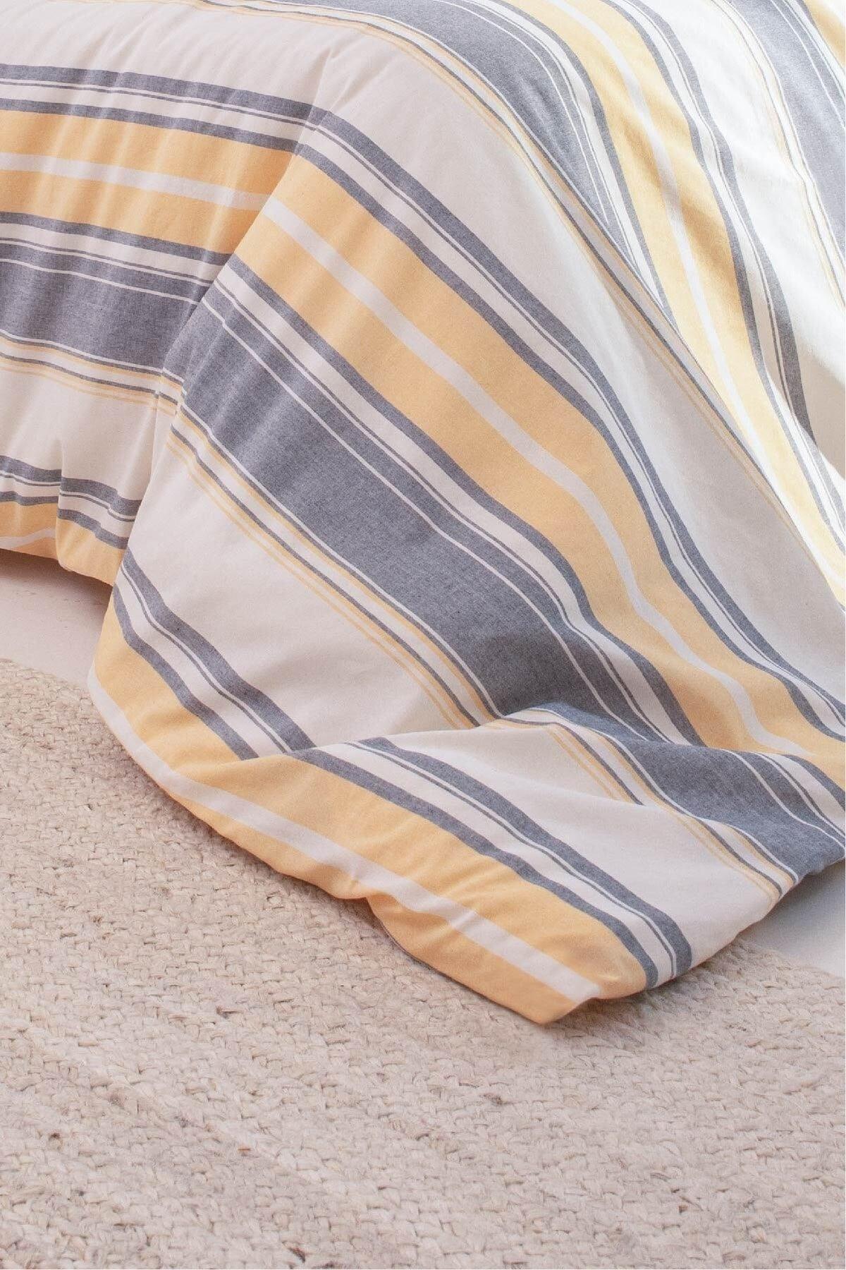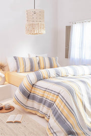 סט כיסוי שמיכת פוך ויינטו כותנה פוליאסטר אפור אקרו פסים צהוב סינגל 9500a
