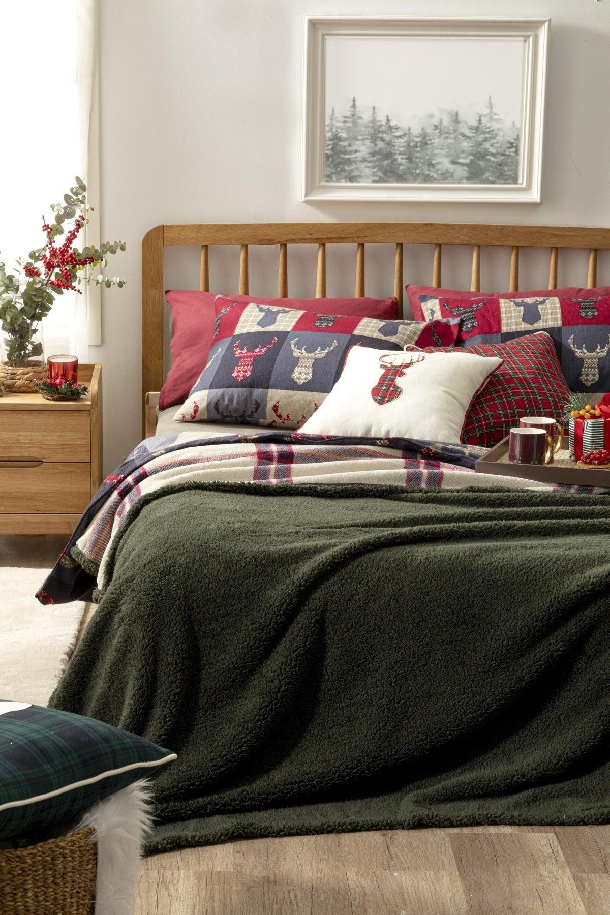 Windowpane Sherpa Double Blanket 200x220 Cm Beige - Red - Swordslife