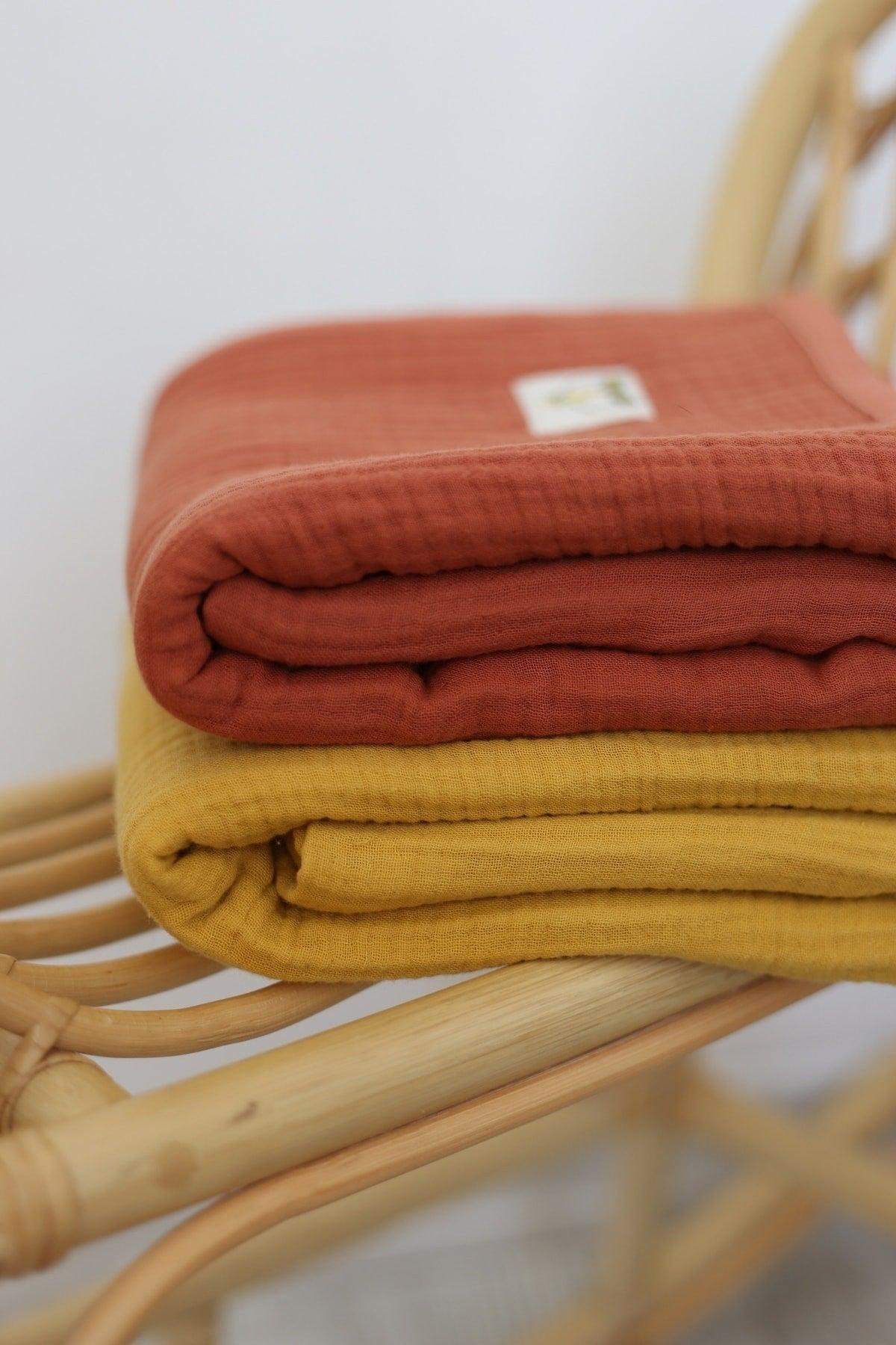 שמיכת מוסלין לתינוק בצבע אחיד 4 שכבות כותנה אורגנית - צבע אריחים