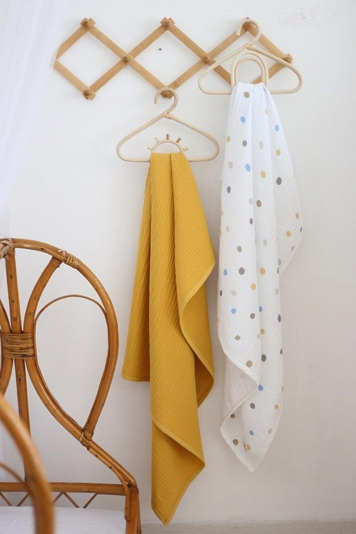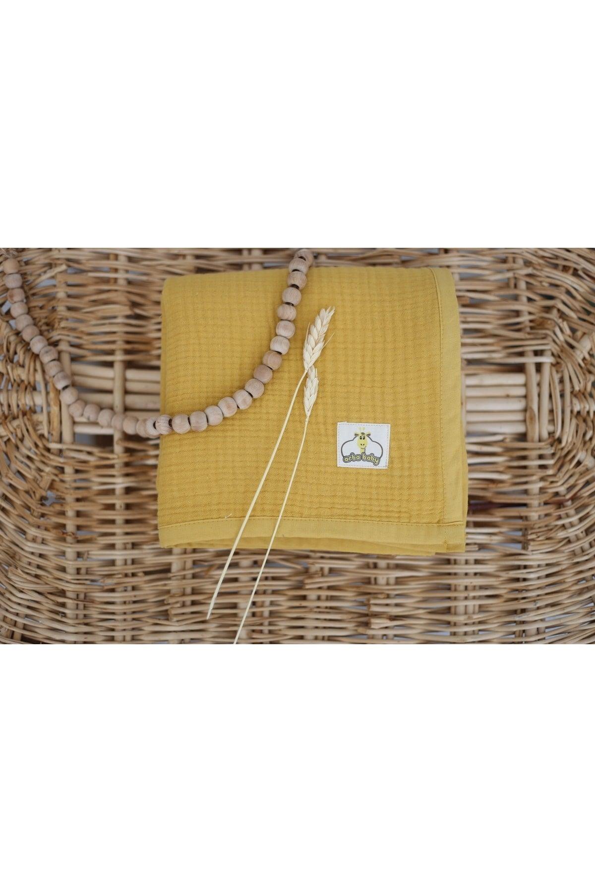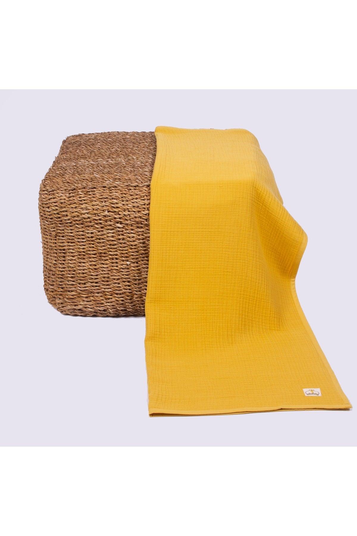 שמיכת מוסלין לתינוק בצבע אחיד 4 שכבות כותנה אורגנית - צבע חרדל