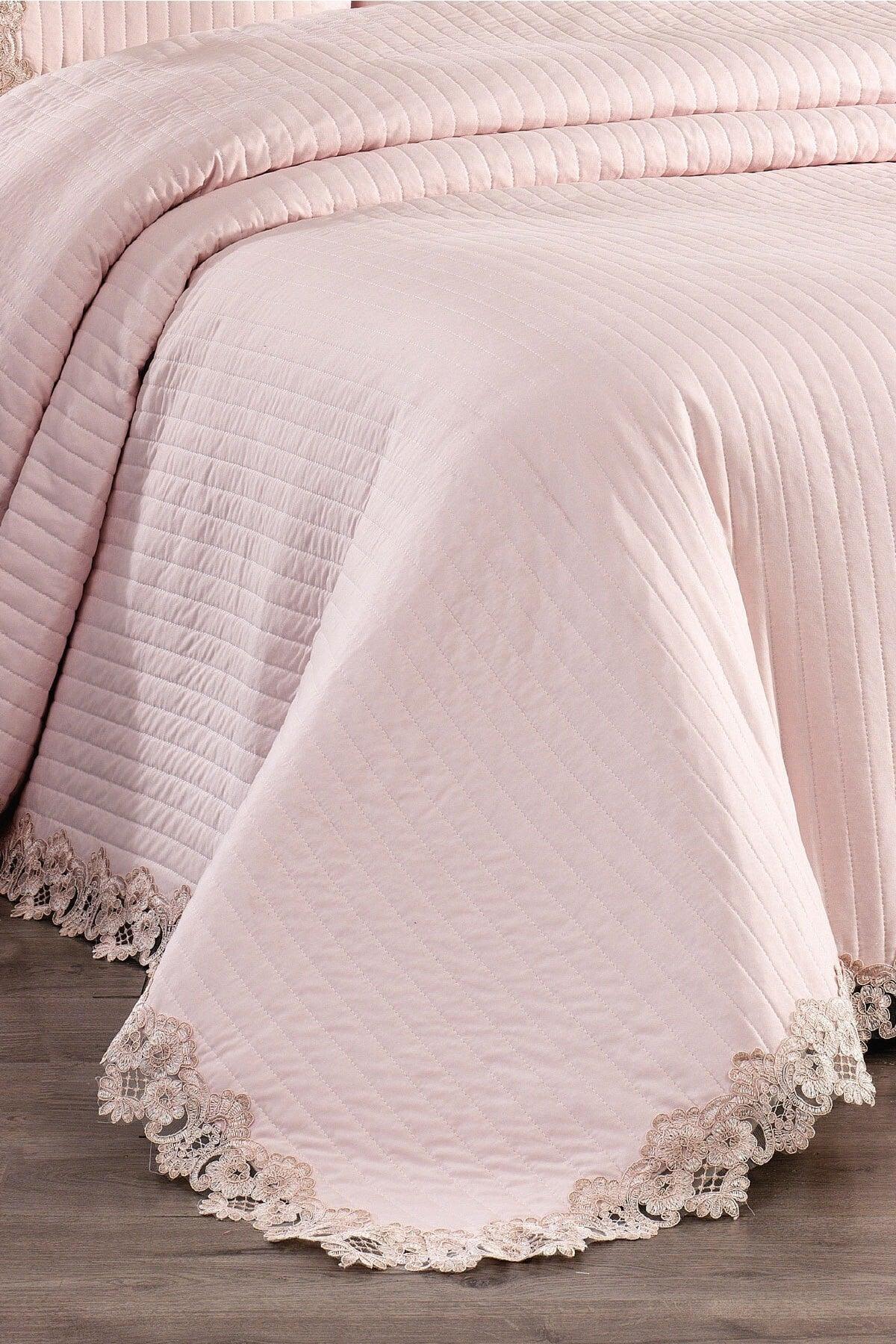 Mihrimah Lace Double 100% Cotton Bedspread ( Pique ) Set Powder - Swordslife