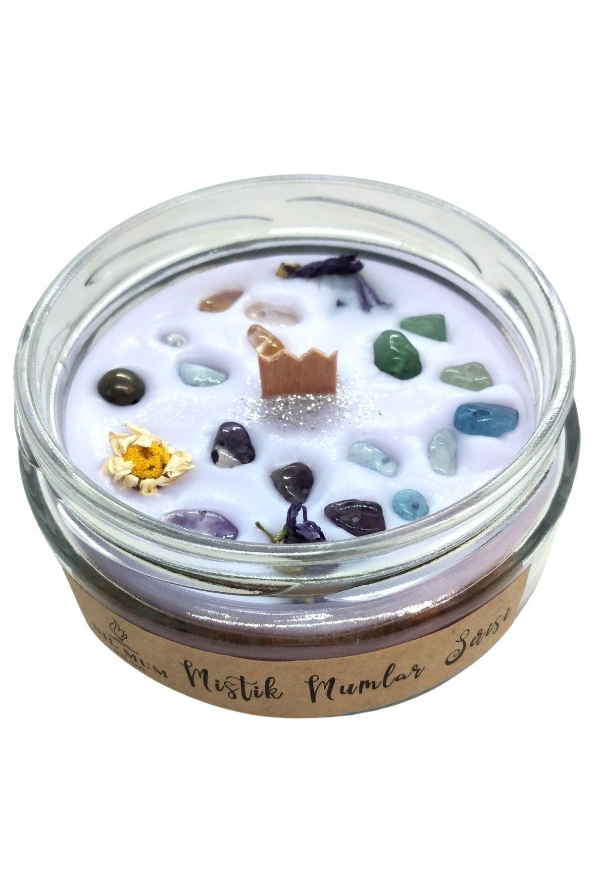 עושר שפע שפע שעוות סויה עם אבן טבעית 240 גר'