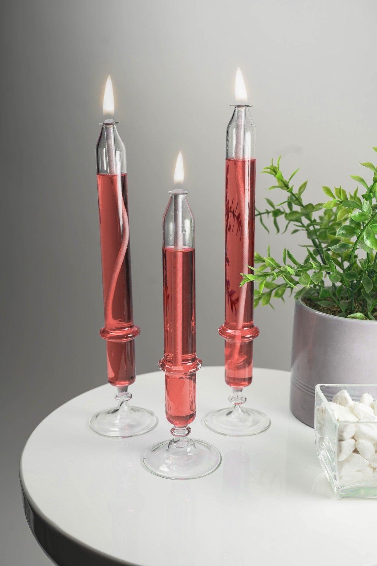 מנורת שמן זכוכית פמוט 3 רגלים + 200 מ"ל מנורת שמן ורד