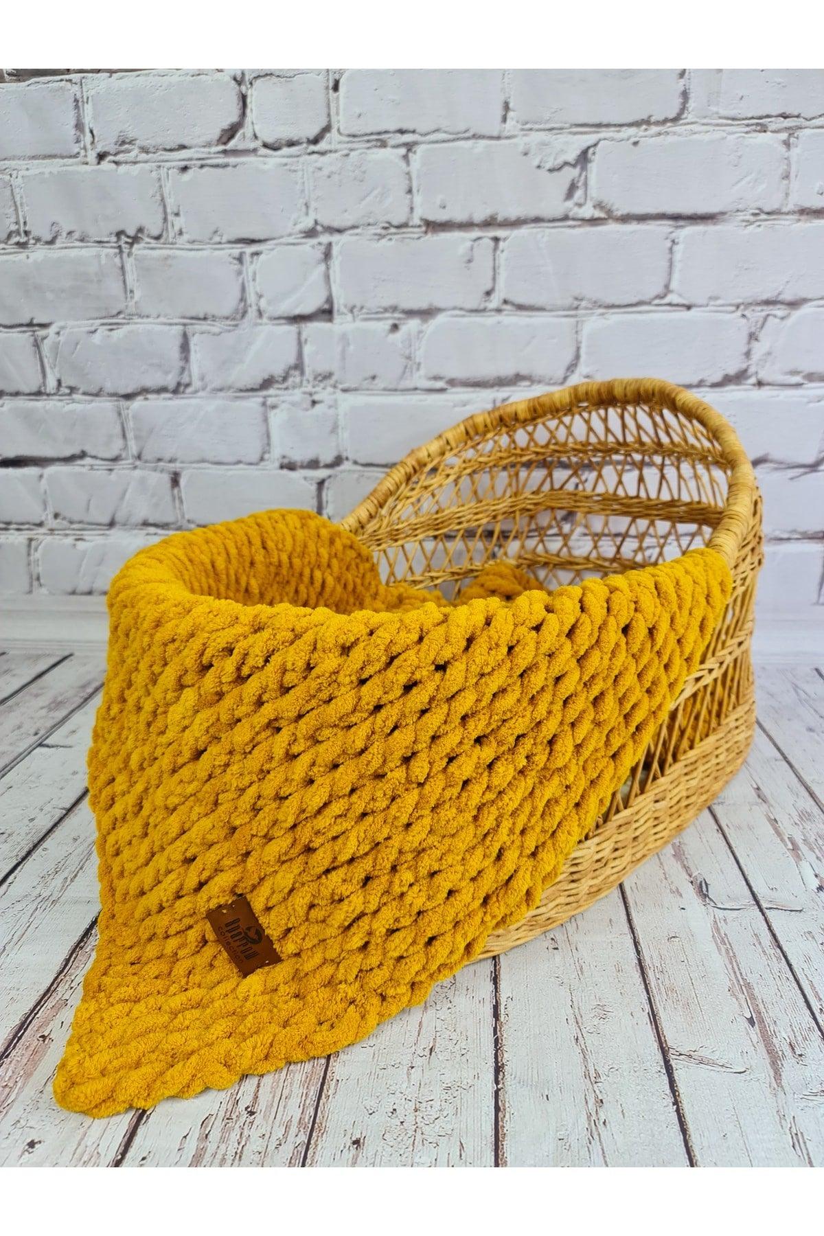 שמיכת תינוק נפוחה בעבודת יד חרדל בעבודת יד