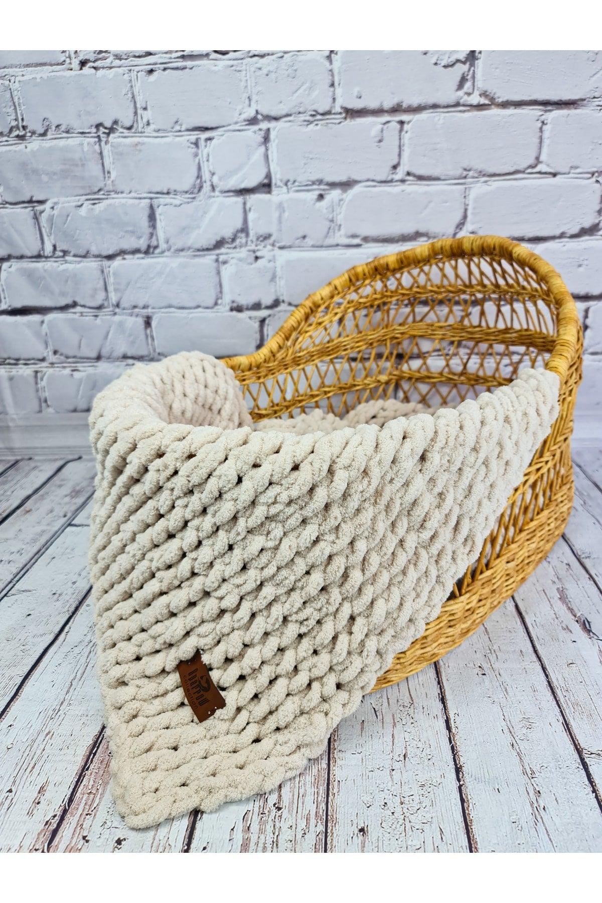 שמיכה נפוחה בעבודת יד בצבע בז' שמיכת תינוק בעבודת יד