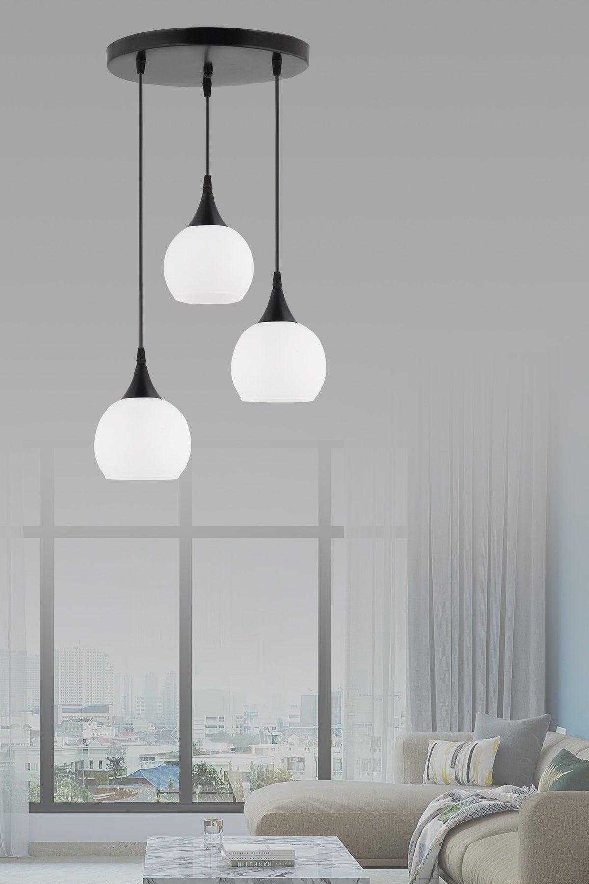 מנורת תליון 3 חלקים מארז שחור לבן נברשת זכוכית אטומה