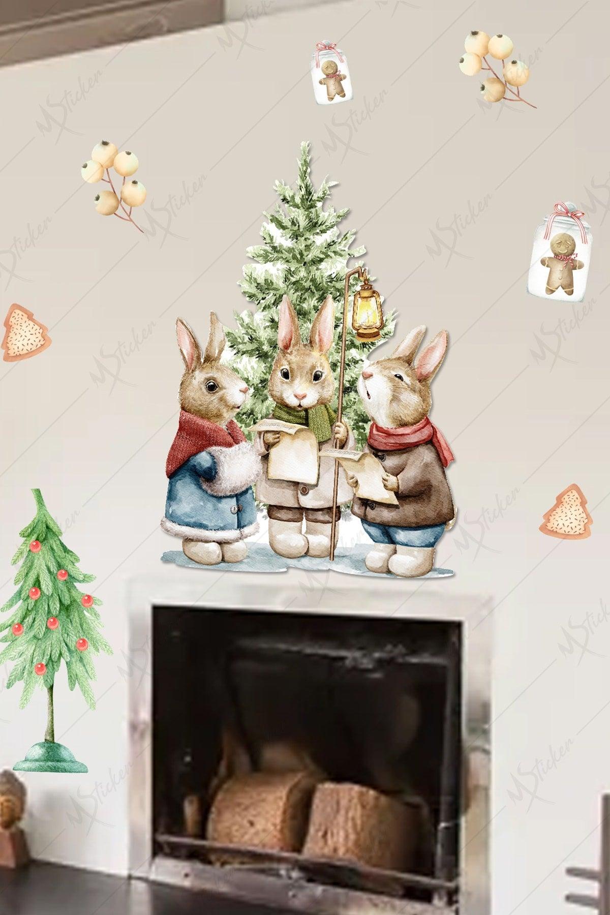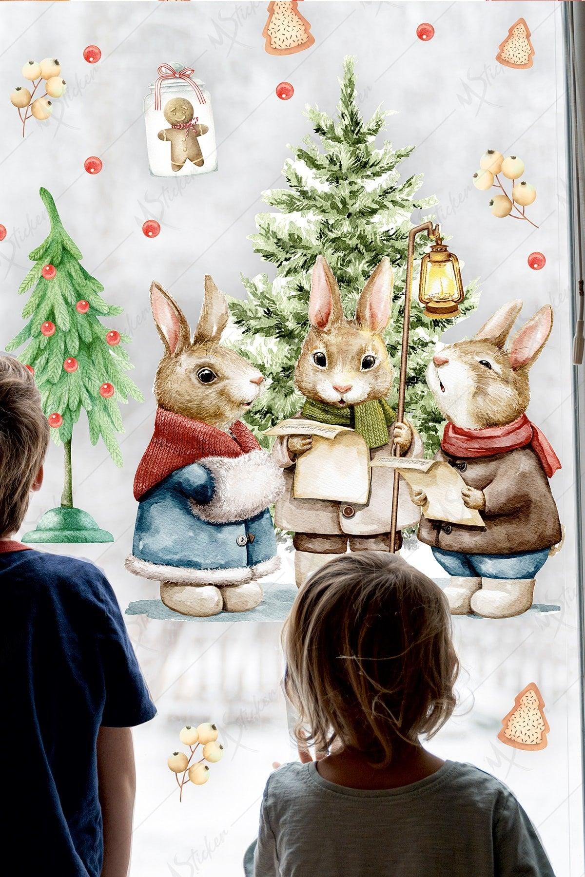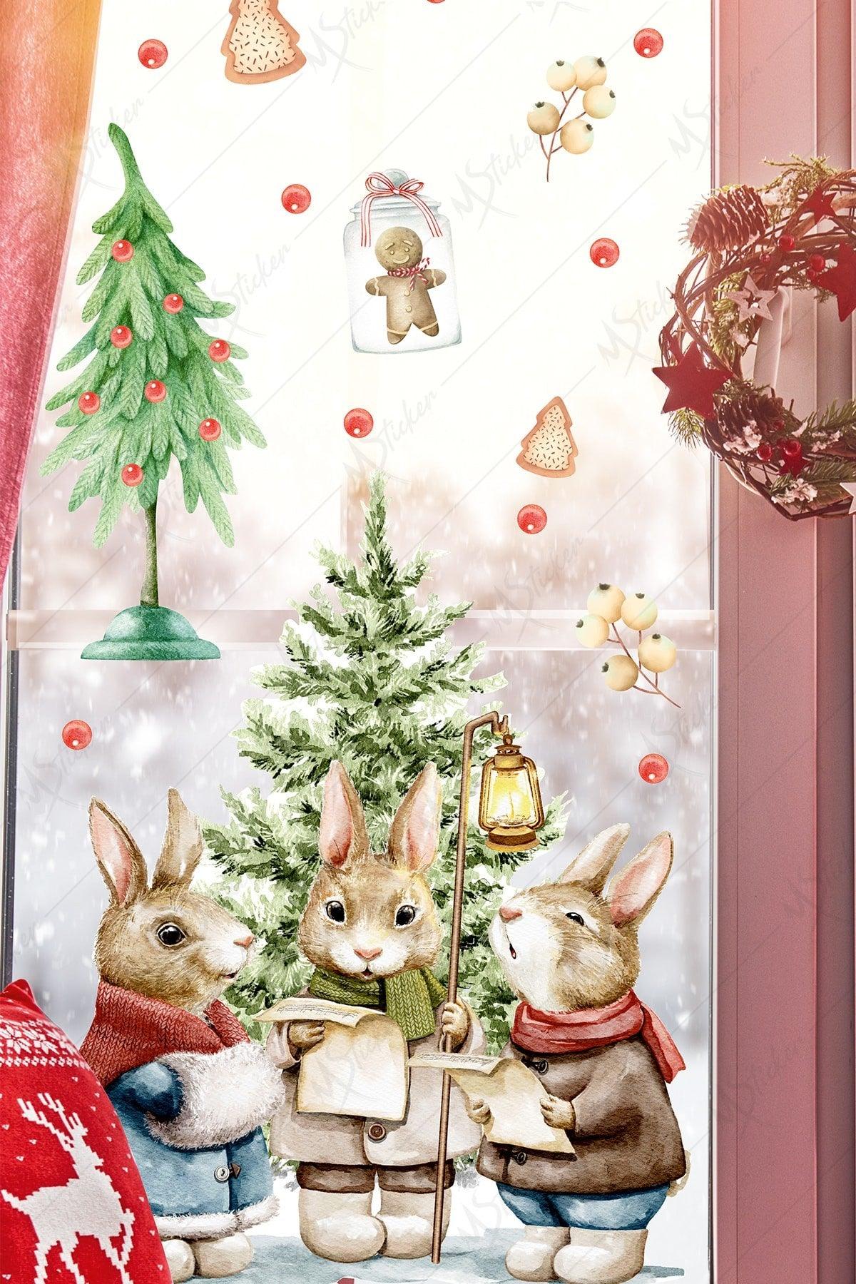 סט מדבקות ארנבות חג המולד, מדבקת דלת ארון בגדים מזכוכית לשנה החדשה לחורף קונספט