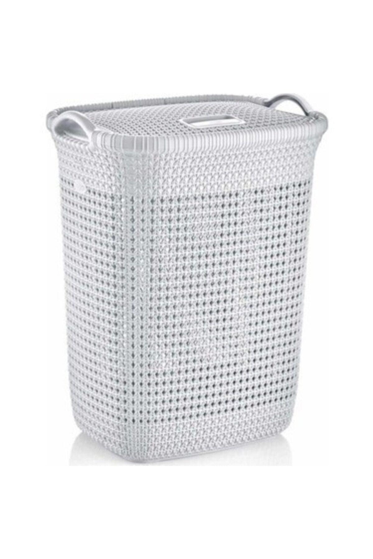 סל כביסה מלוכלך בדוגמת אריגה לבנה 52 ליטר