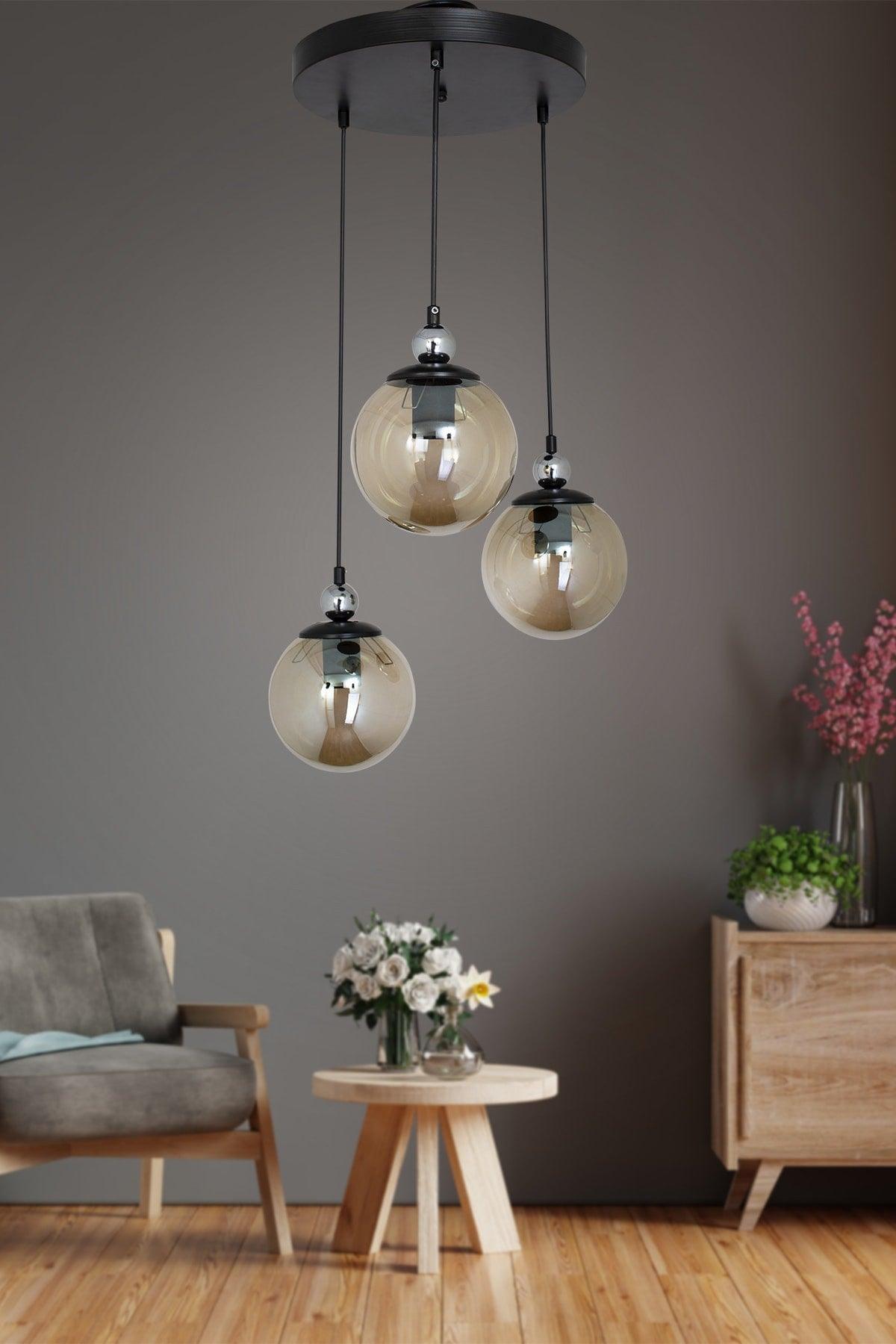 מודרני טריפל Alvina עגול זכוכית מעושנת מנורת תליון נברשת