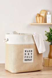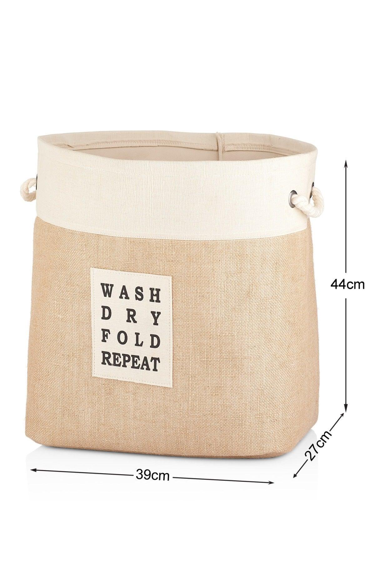סל כביסה יוטה מלבני עם רצועת שמנת