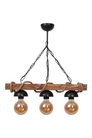 נברשת עץ 3 חלקים נברשת חבל כפרי