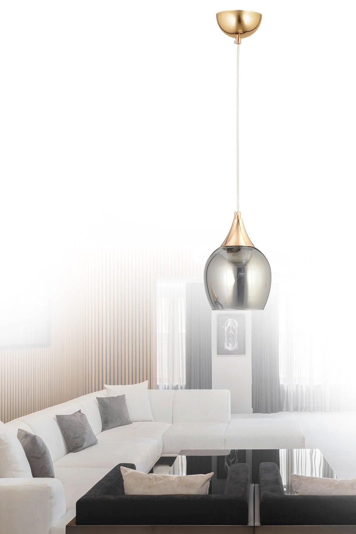 Sante Single Gold זכוכית מעושנת נברשת תליון מודרנית