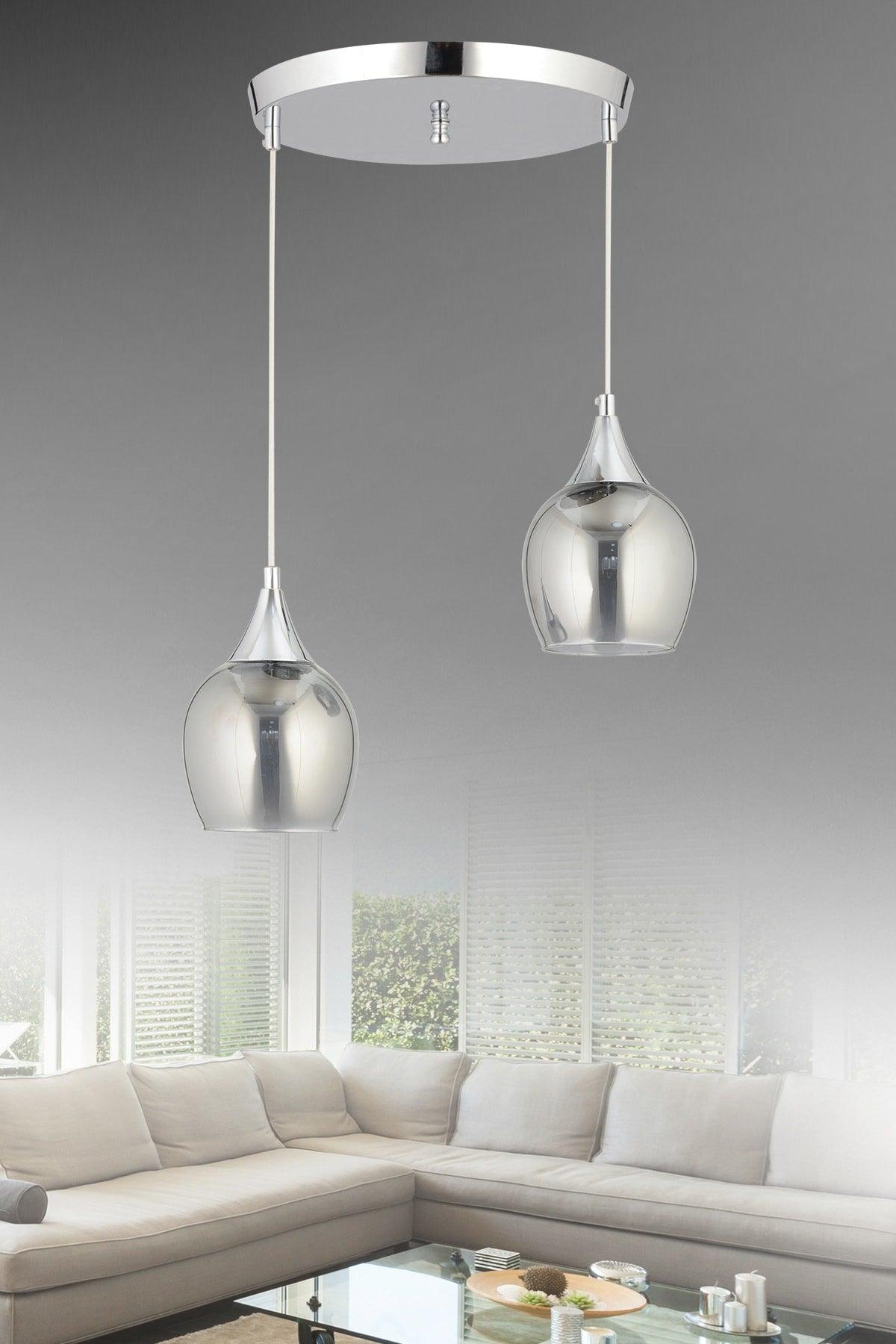 Sante 2 סטים כרום זכוכית מעושנת נברשת מנורת תליון מודרנית