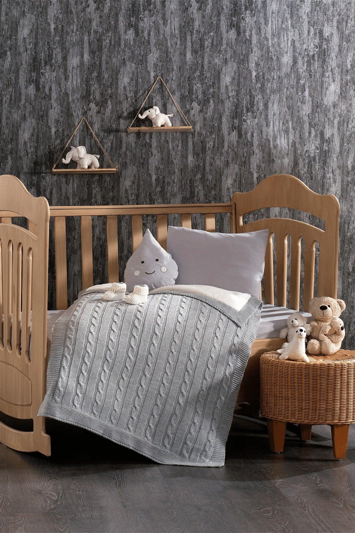 סט שינה לתינוק לילי גריי עם נעלי 4 חלקים ושמיכת סריגים 100% כותנה וכרית אגס