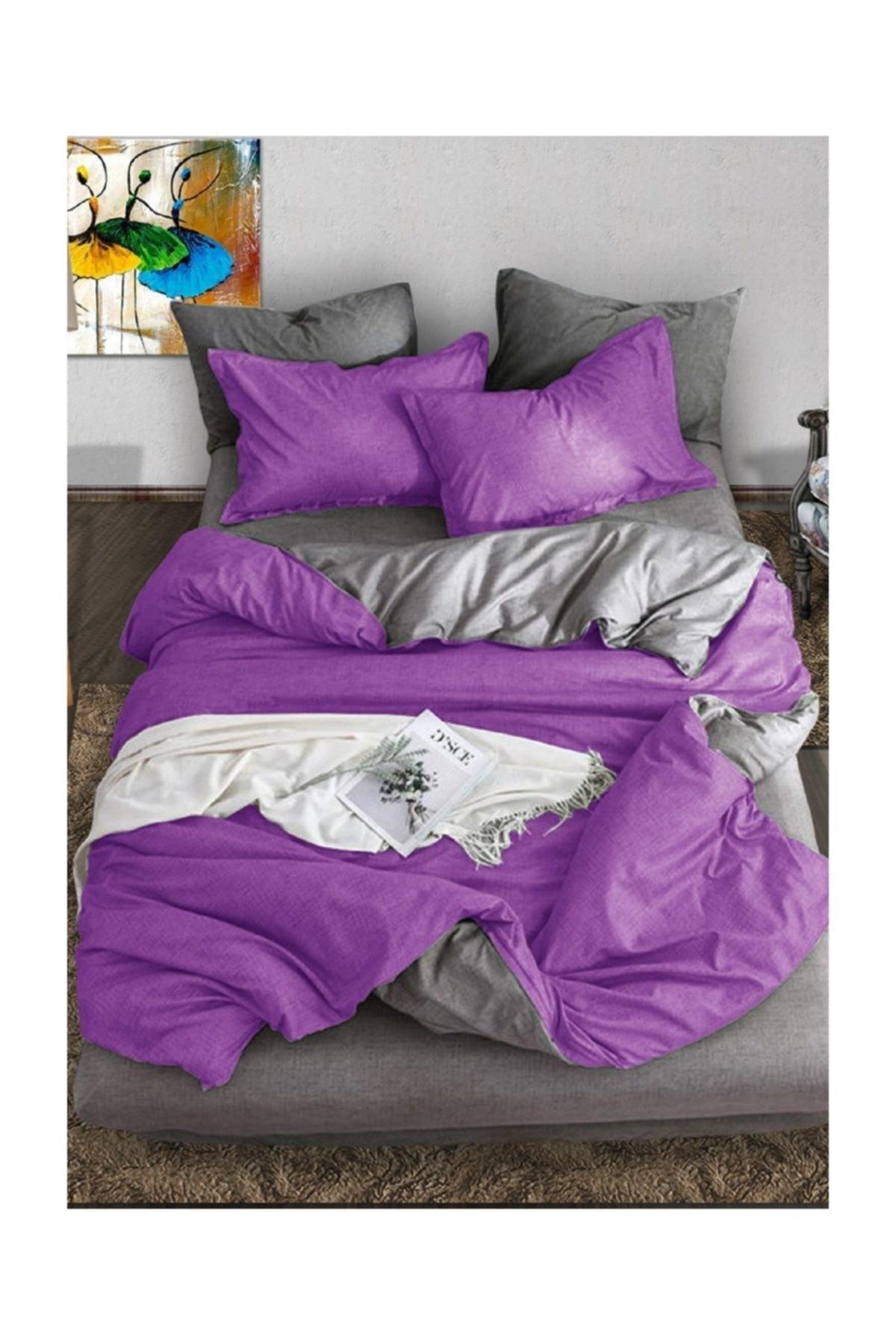 סט כיסוי שמיכת פוך זוגי 100% כותנה טבעית אפור לילך