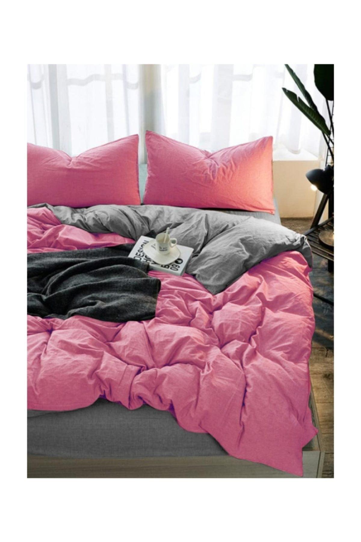 סט כיסוי שמיכת פוך זוגי 100% כותנה טבעית ורוד אפור
